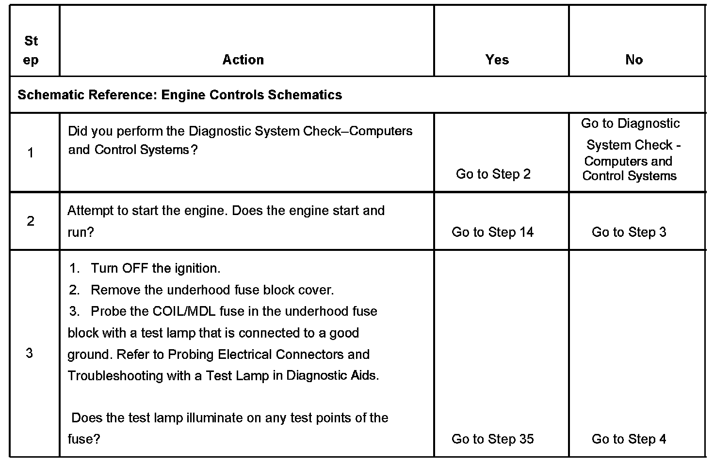 3. This step tests for a short to battery positive voltage on the ignition 1 voltage circuit. When the ignition is turned OFF, the test lamp should not illuminate at the COIL/MDL fuse.