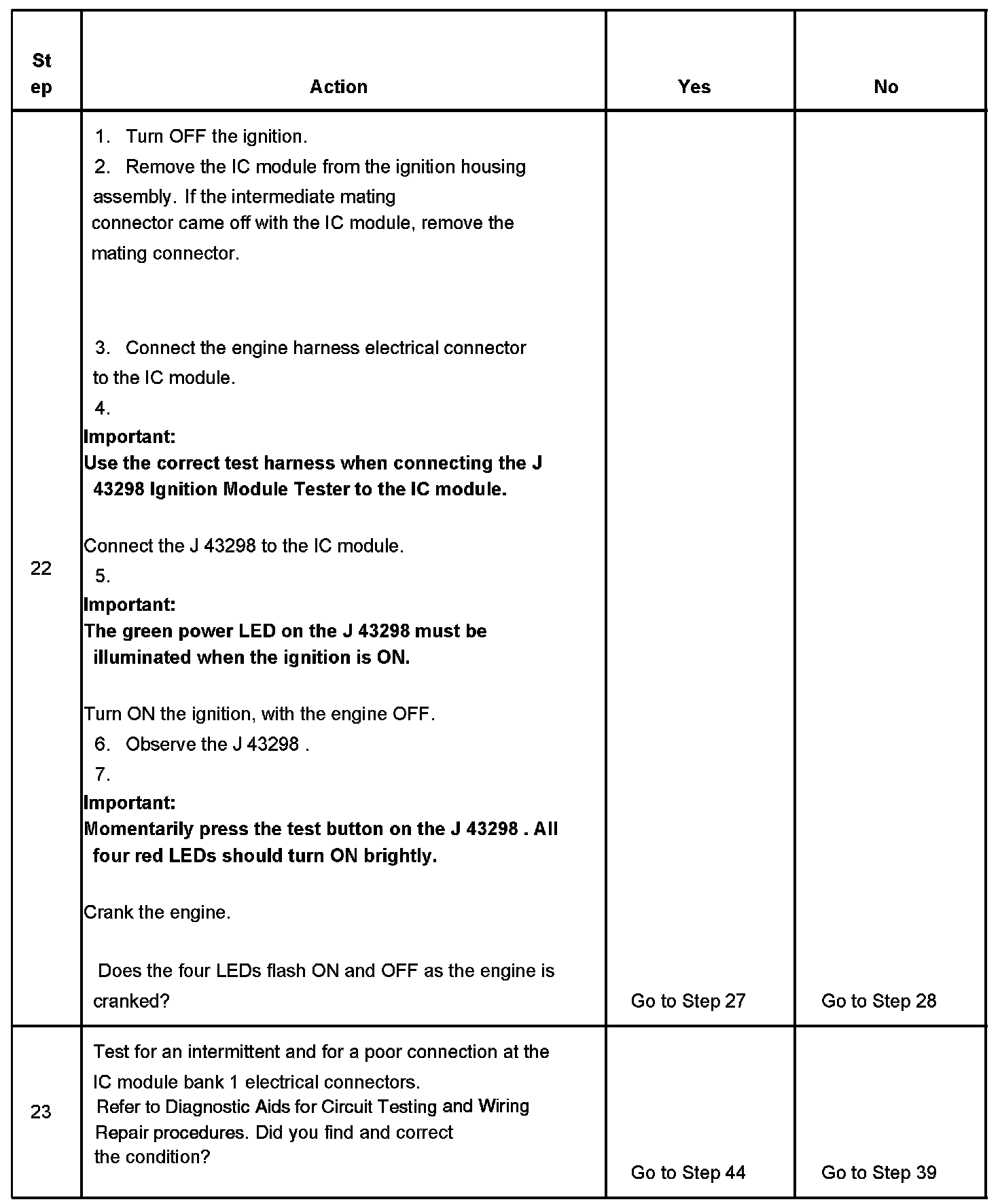- This Electronic Ignition (EI) System diagnostic table assumes that the vehicle battery is fully charged. Refer to Battery Inspection/Test in Starting and Charging. Battery Inspection/Test
