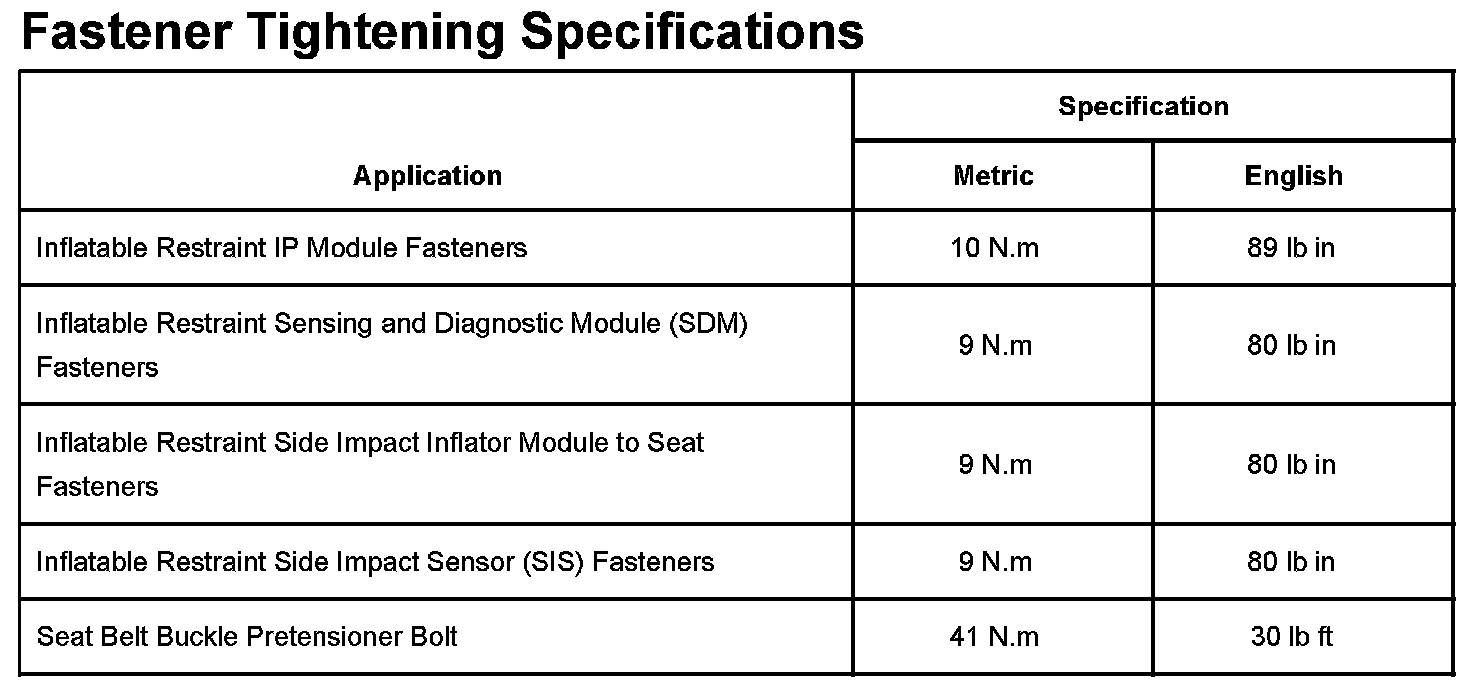 Fastener Tightening Specifications: