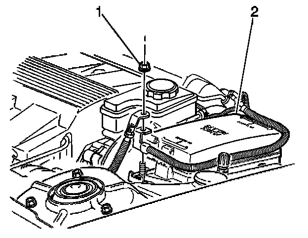4. Remove the nut (1) securing the battery positive cable to the remote positive terminal.