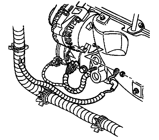 6. Remove the generator output BAT terminal nut and disconnect the positive lead from the generator.
