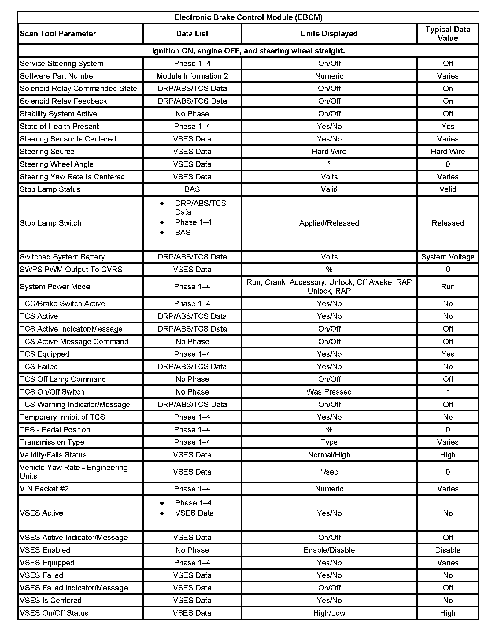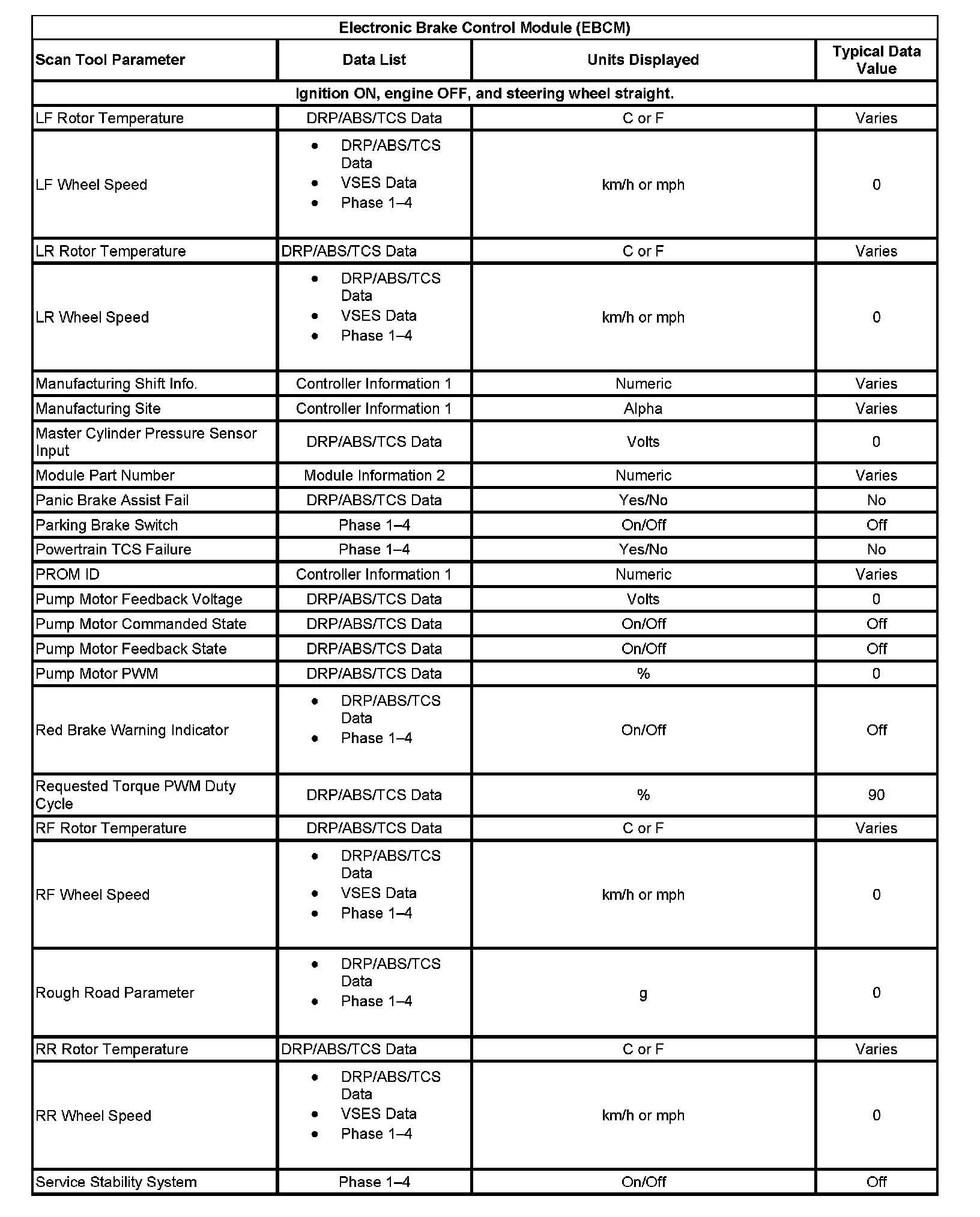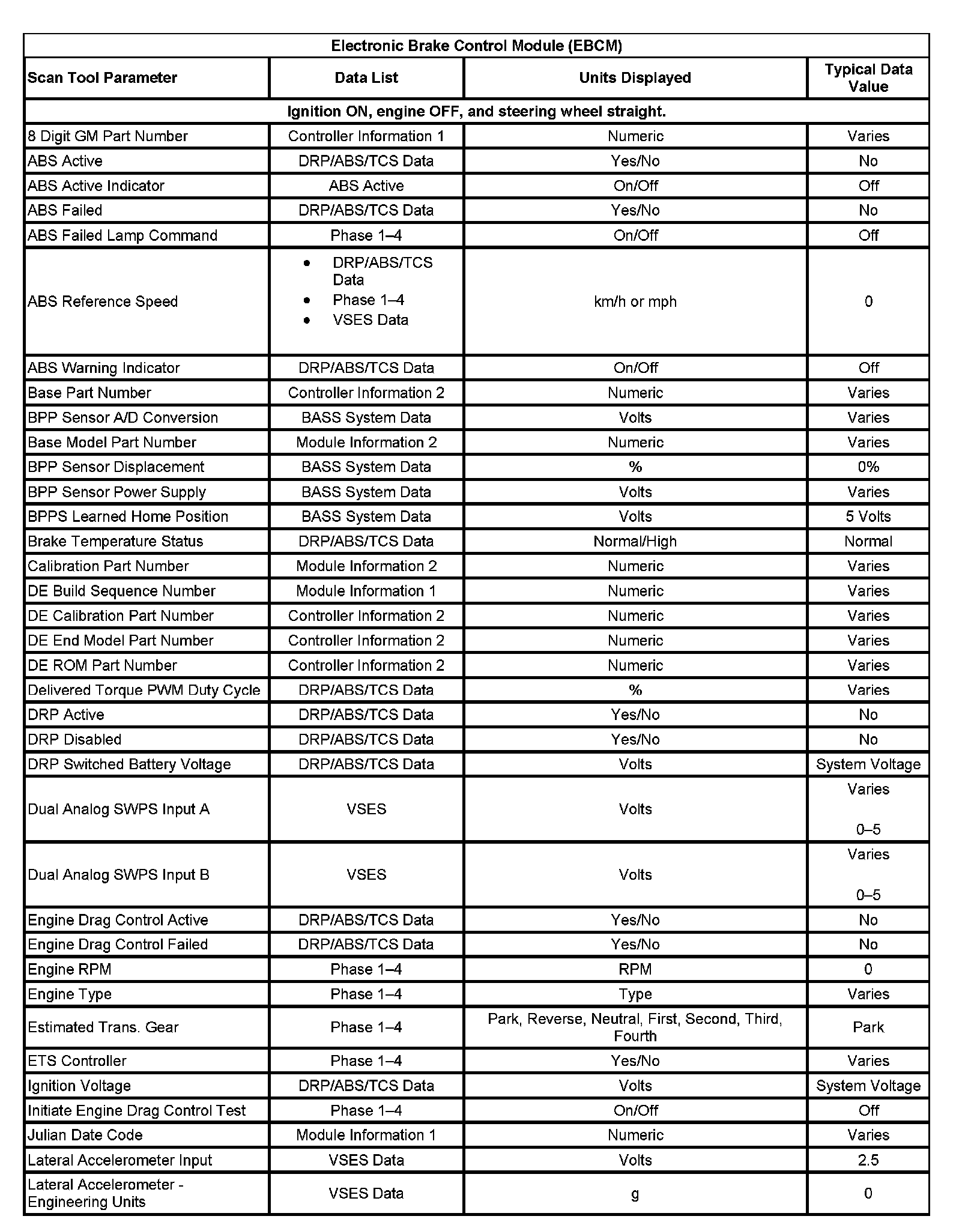 Scan Tool Data List