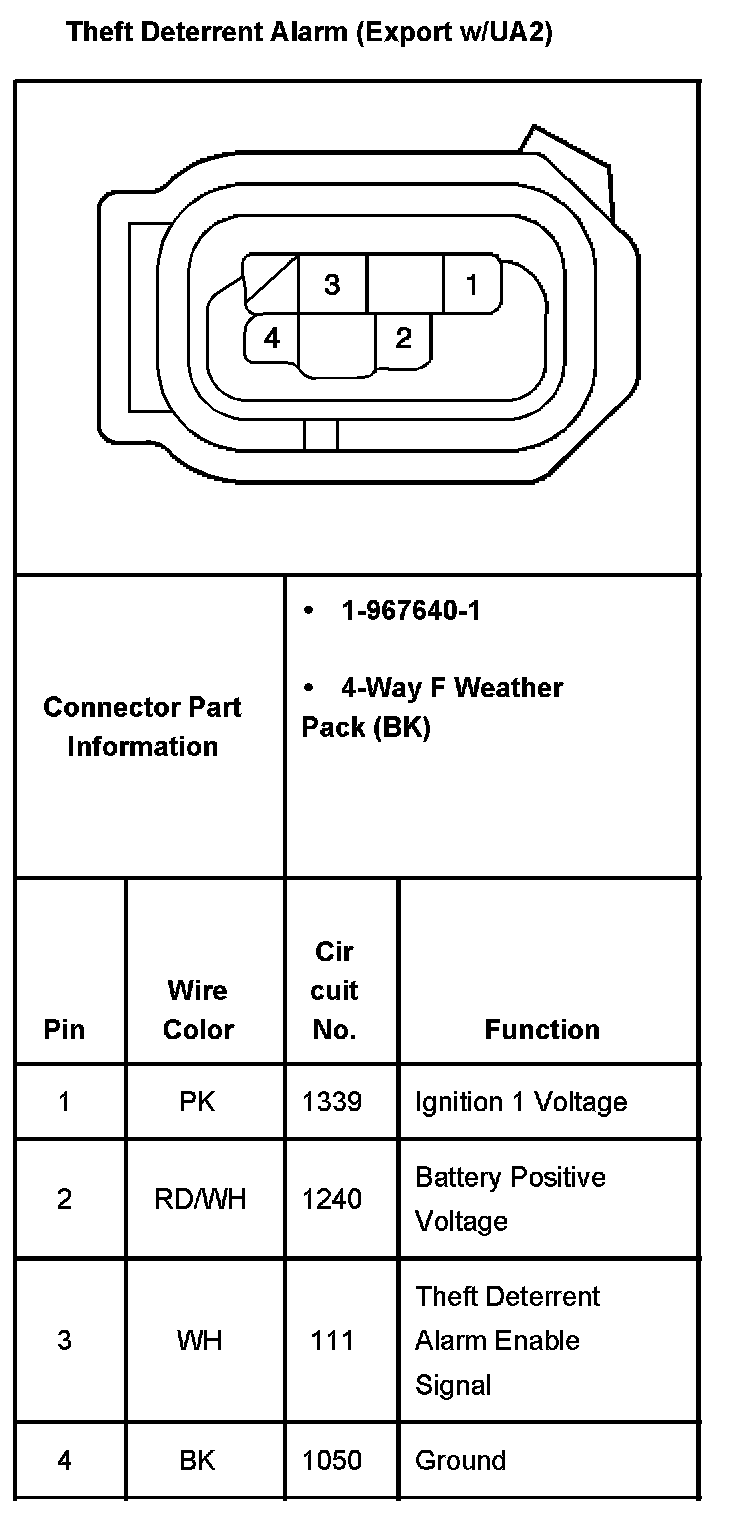 Theft Deterrent Alarm (Export With RPO Code UA2):