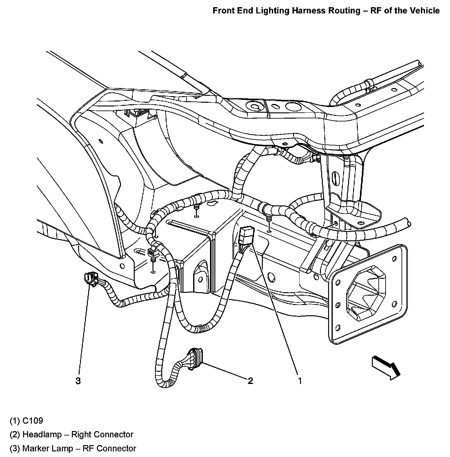 Front End Lighting Harness Routing - RF Of The Vehicle: