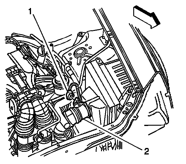 1. Disconnect the electrical connector (1) from the mass air flow (MAF)/intake air temperature (IAT) sensor (2).