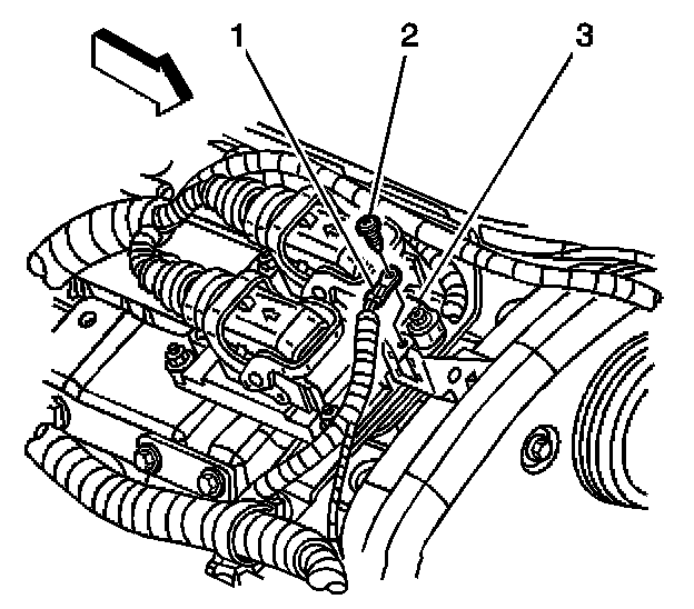 5. Install the screw (2) securing the ECM ground wire (1) to the ECM (3).