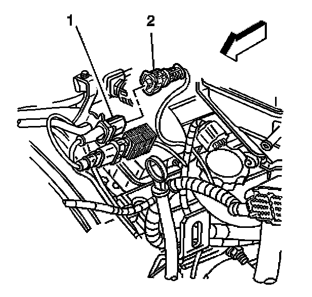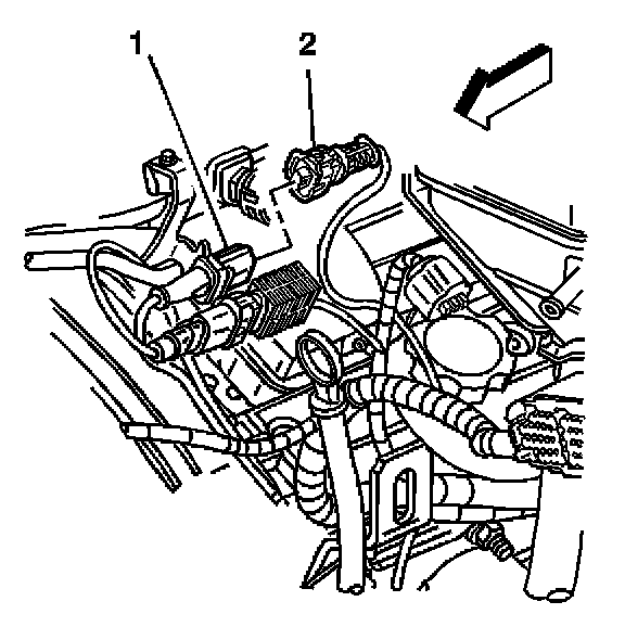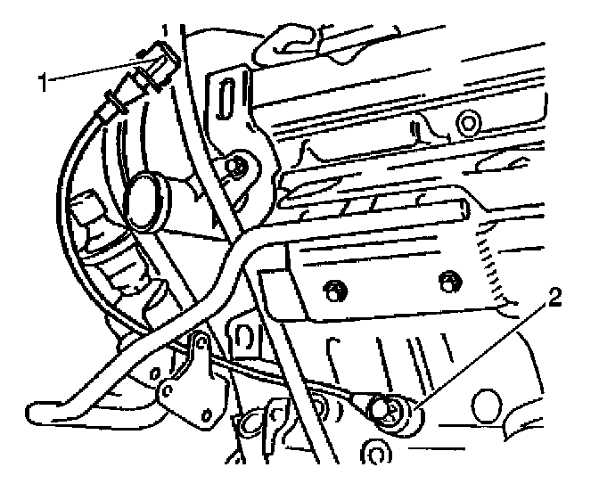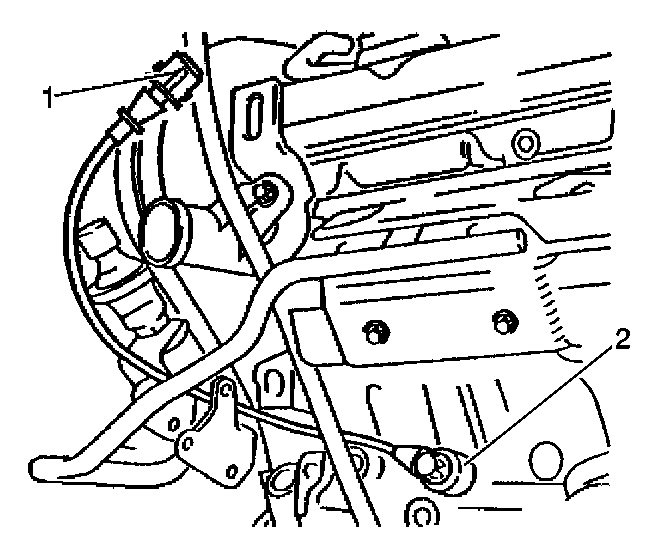 1. Disconnect the knock sensor pigtail (1) from the electrical connector (2) and bracket.