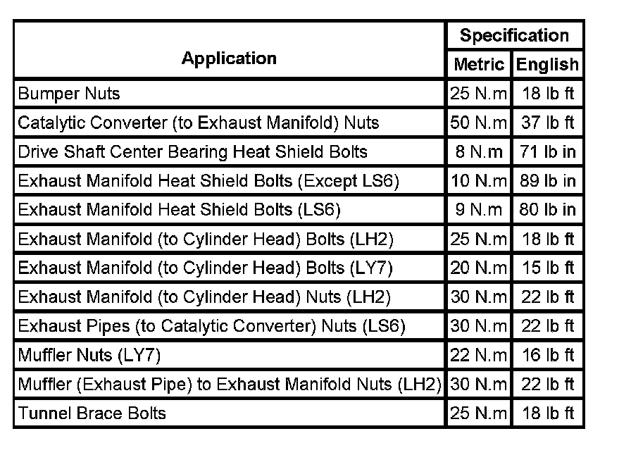 Fastener Tightening Specifications: