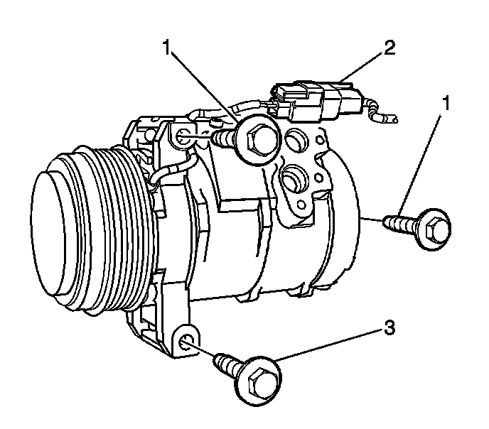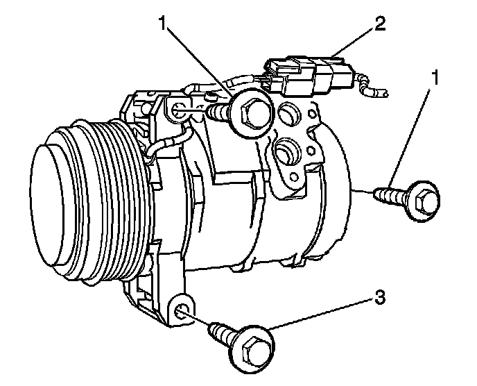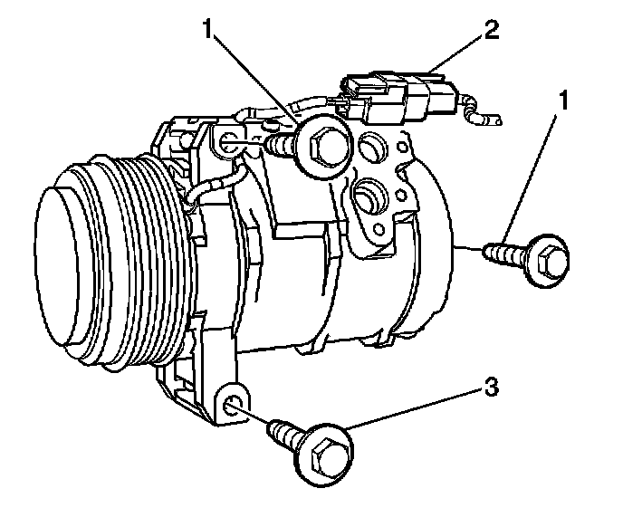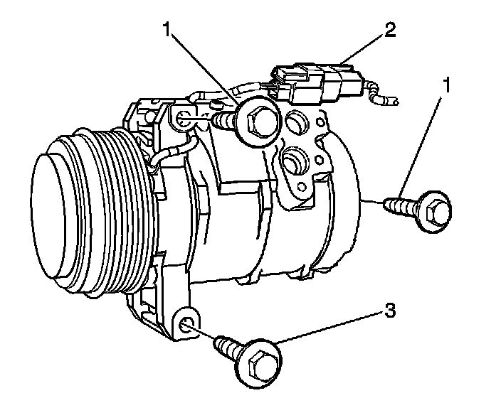 7. Remove the compressor mounting bolt (3) from the compressor.