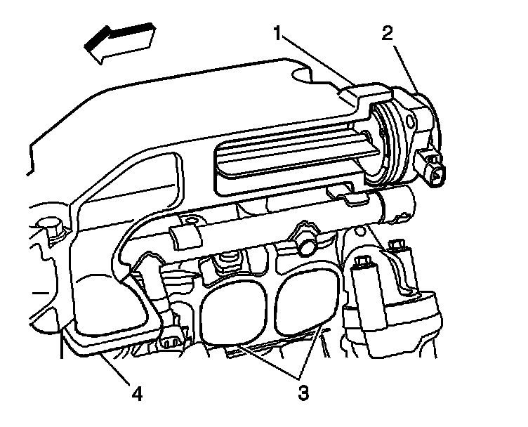 An intake manifold runner control (IMRC) valve (2) is used to change the intake manifold runner configuration. When the IMRC valve is open, the intake manifold is configured to one large plenum (4). When the IMRC valve is closed, the intake manifold is configured to two smaller plenums (3). The two intake manifold runner sizes result in different torque curves which improves performance at low and high engine speeds. The IMRC valve is located in the intake manifold (1). The IMRC valve solenoid is supplied with ignition 1 voltage and is controlled by the engine control module (ECM).