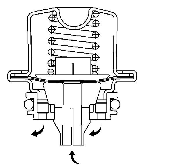 The fuel pressure regulator attaches to the fuel return pipe on the fuel sender assembly. The fuel pressure regulator is a diaphragm-operated relief valve. A software bias compensates the injector on-time because the fuel pressure regulator is not referenced to manifold vacuum. The injector pulse width varies with the signal from the mass air flow (MAF)/intake air temperature (IAT) sensor. With the engine running at idle, the system fuel pressure at the pressure test connection should be between 380-410 kPa (55-60 psi). With the system pressurized and the pump OFF the pressure should stabilize and hold. If the pressure regulator supplies a fuel pressure which is too low or too high, a driveability condition will result.