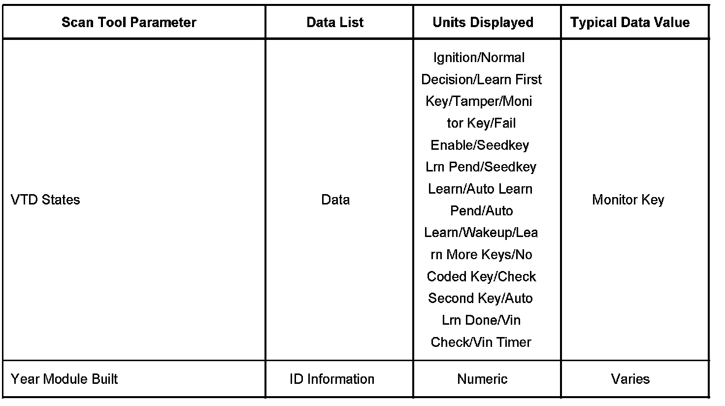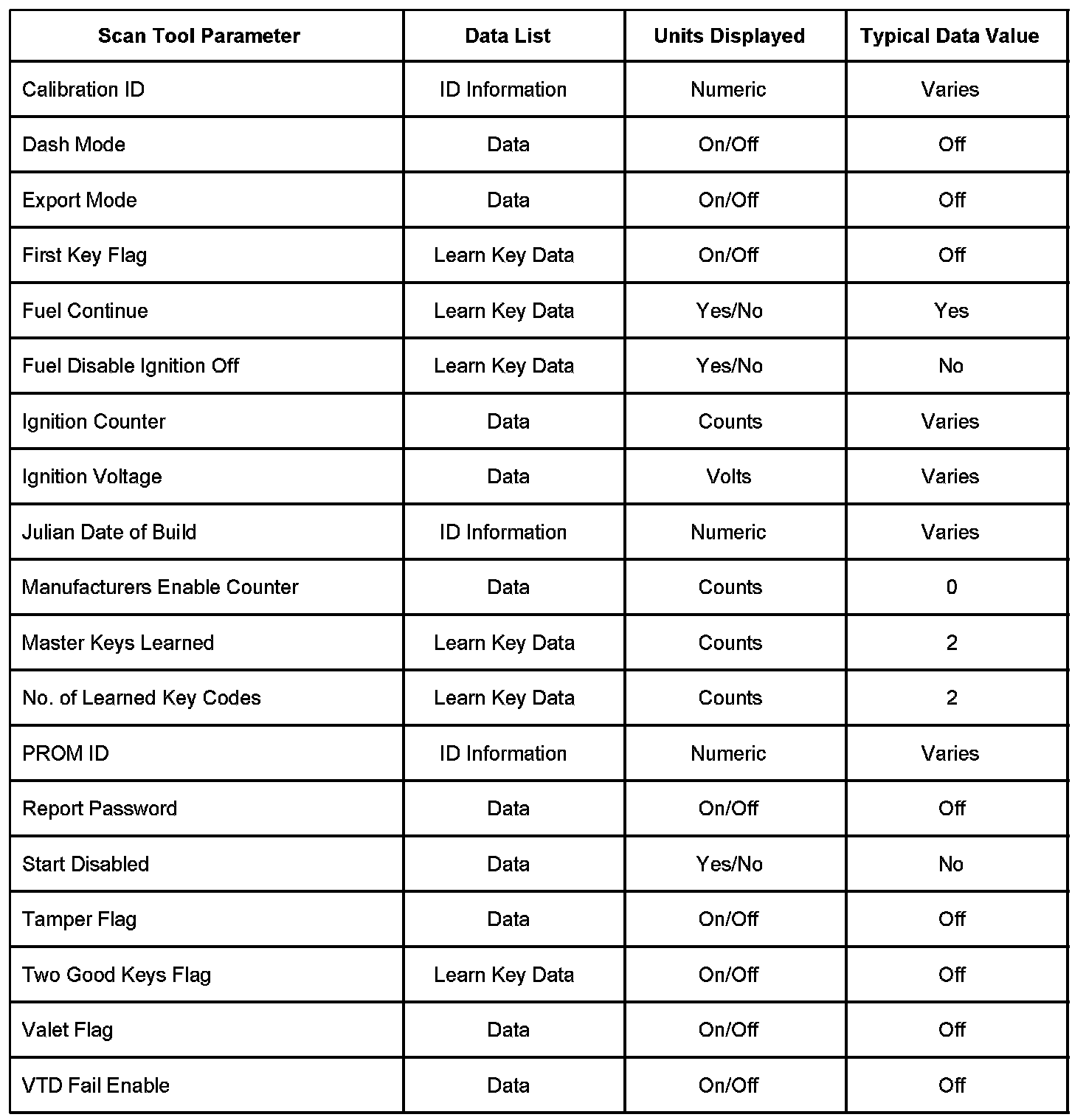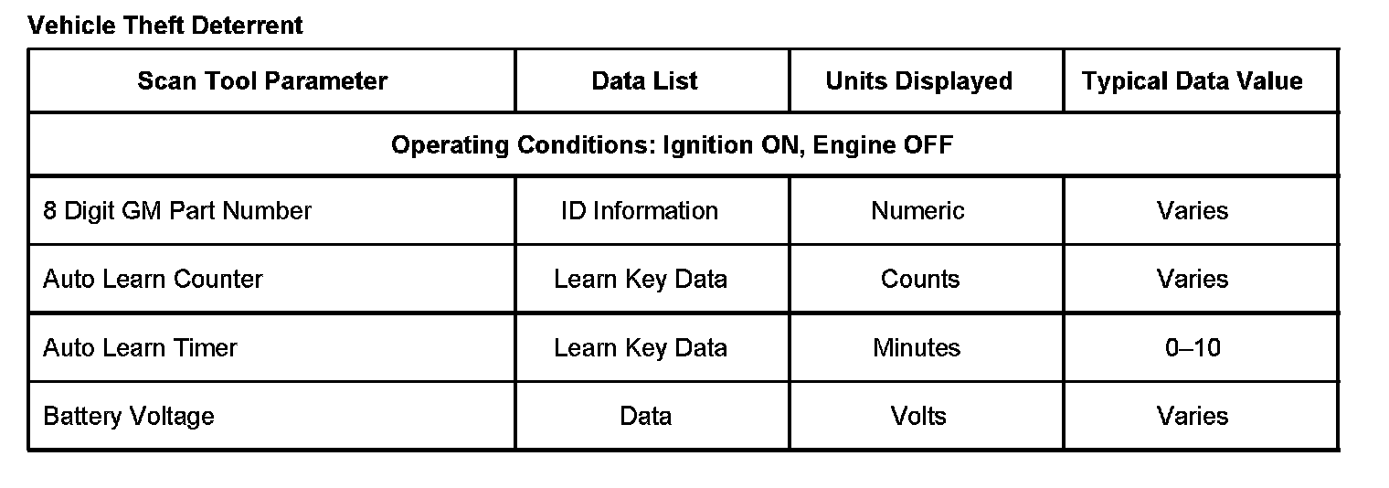 Scan Tool Data List - Antitheft System