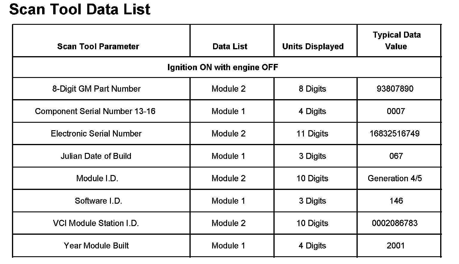 Scan Tool Data List: