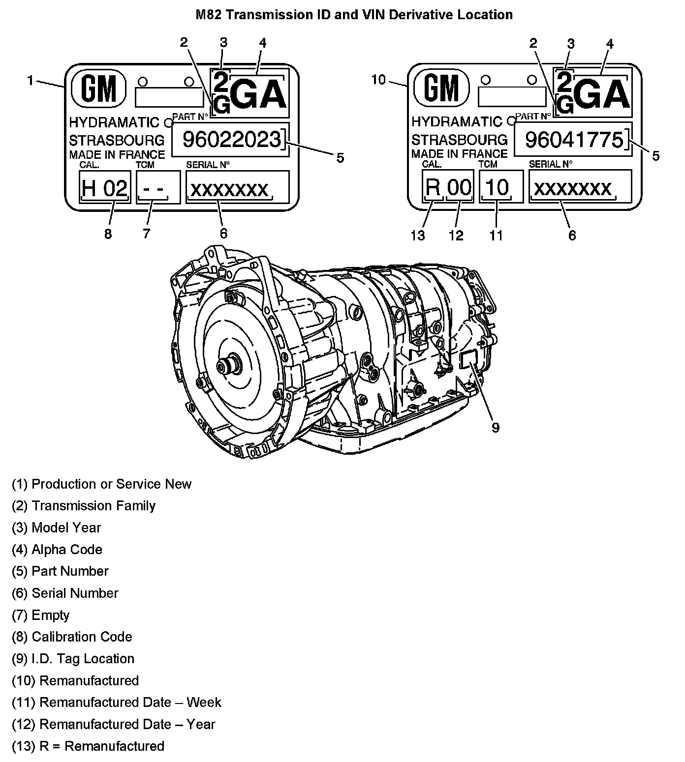 M82 TRANSMISSION ID AND VIN DERIVATIVE LOCATION