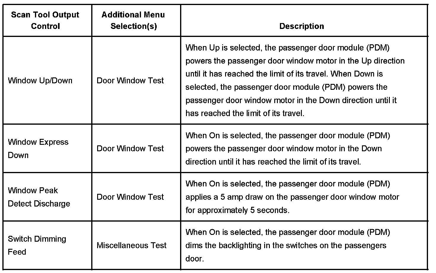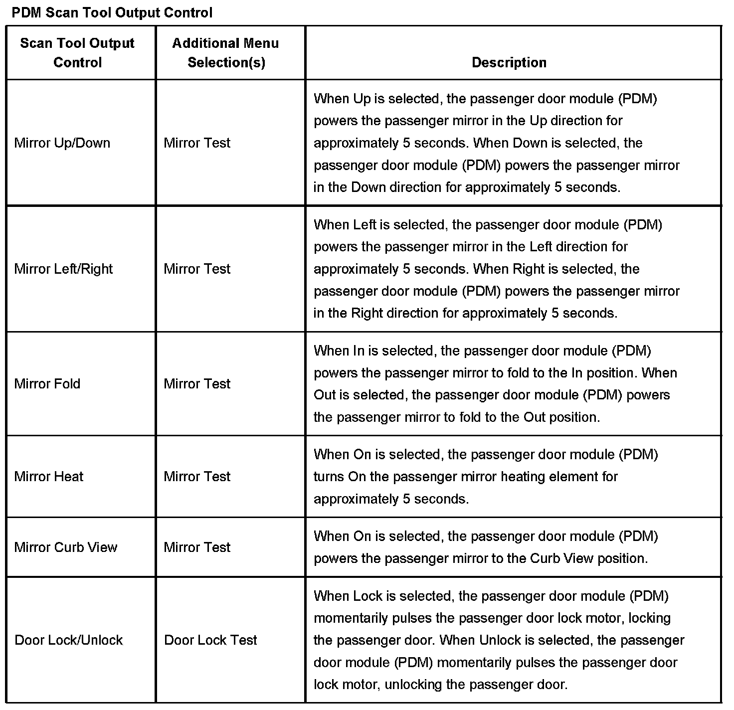 Scan Tool Output Controls - Powertrain Control Module (PCM)