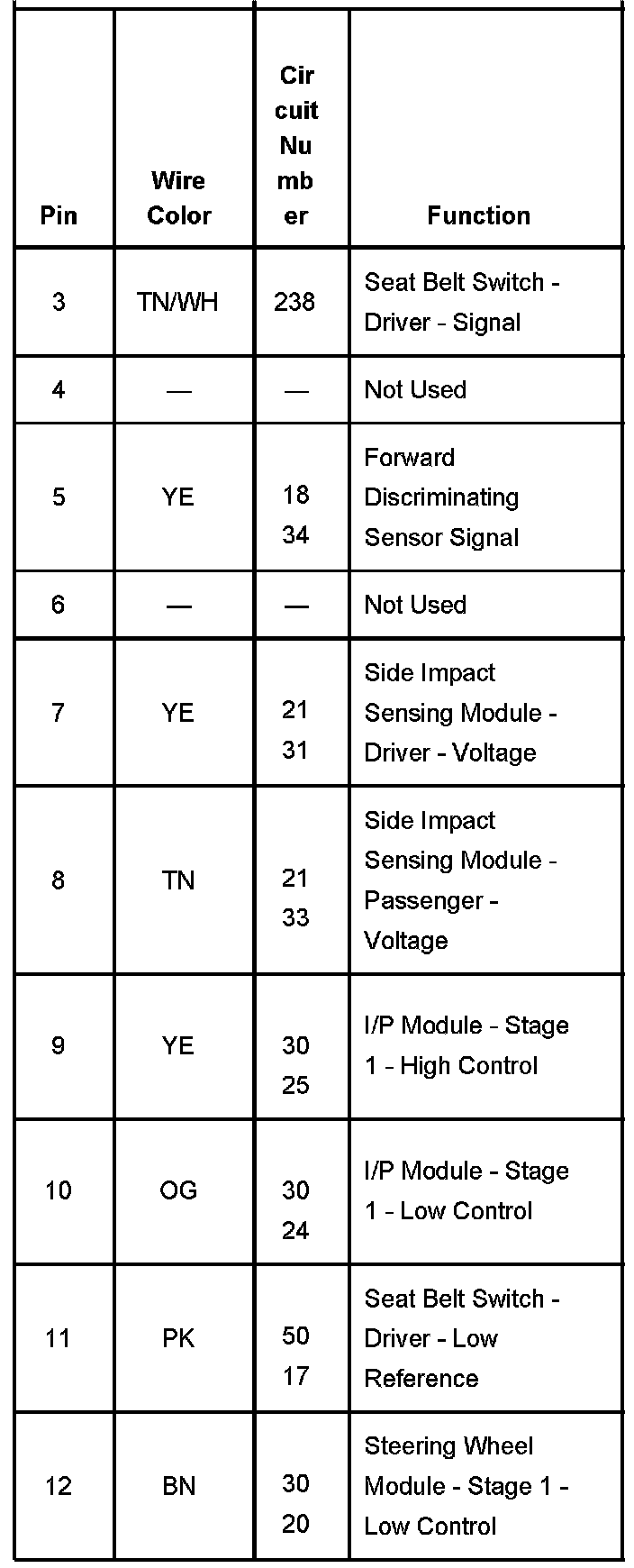 Inflatable Restraint Sensing And Diagnostic Module (SDM) Part 3: