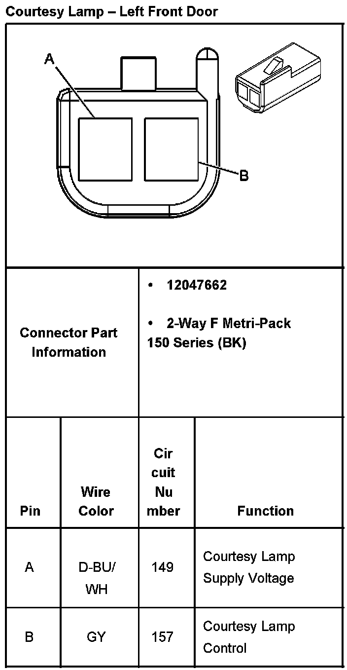 Courtesy Lamp - Left Front Door: