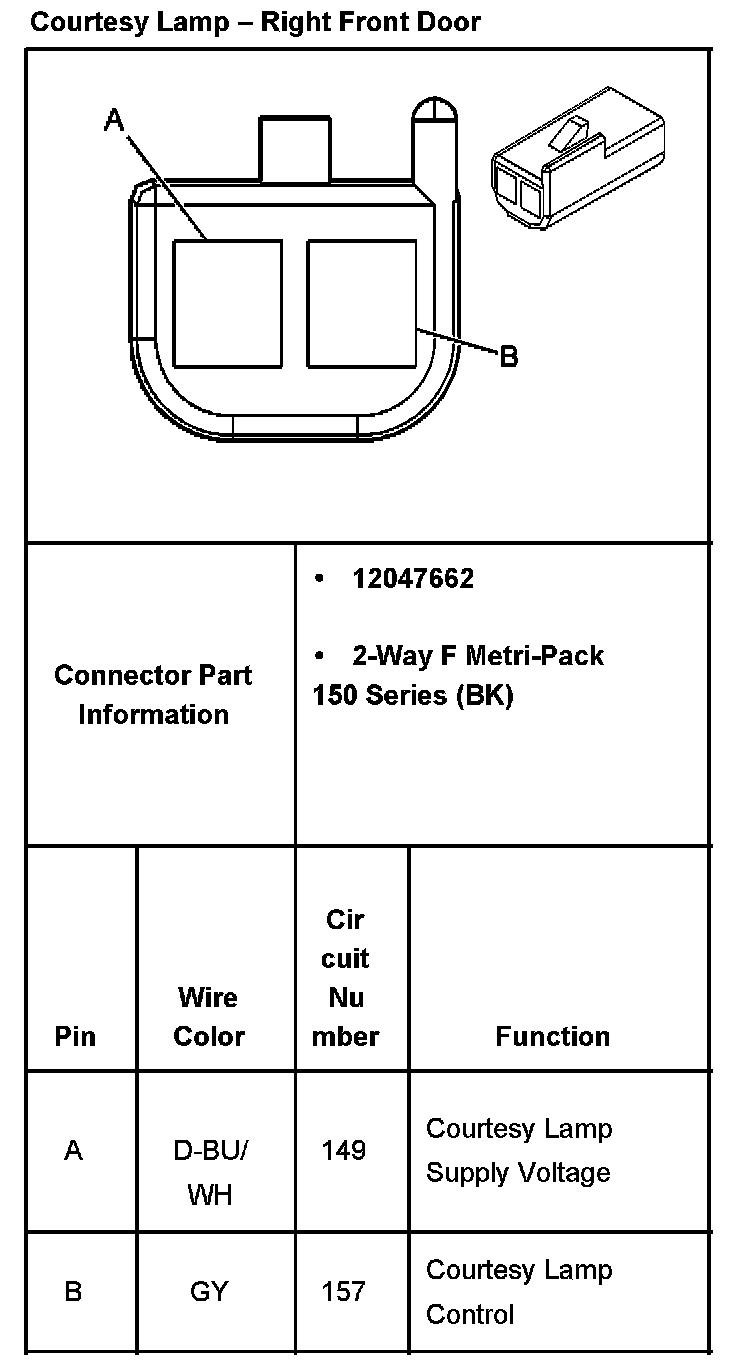 Courtesy Lamp - Right Front Door: