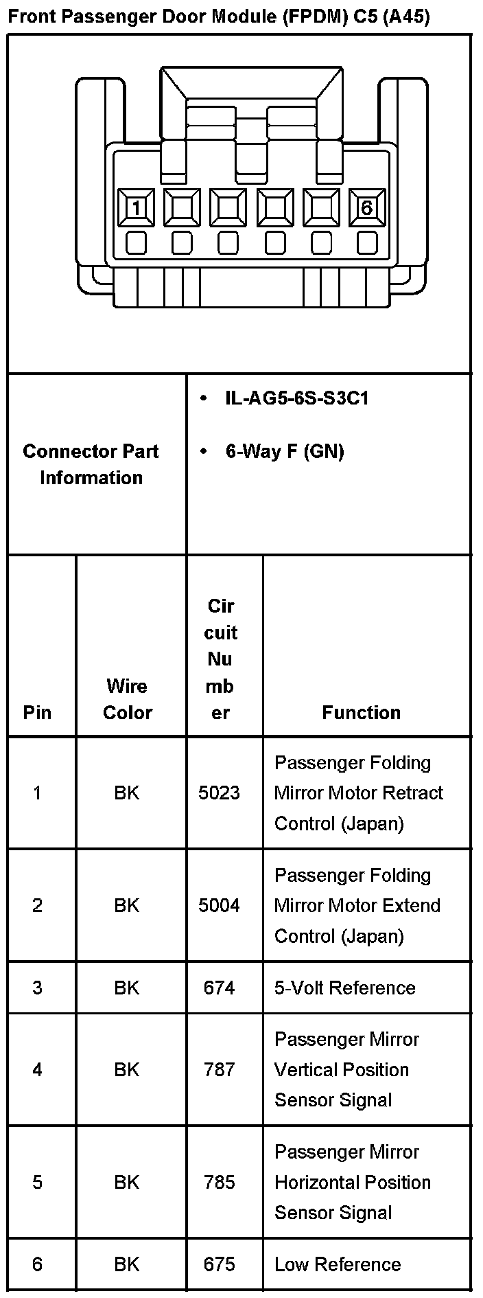 Front Passenger Door Module (FPDM) C5 (With RPO Code A45):