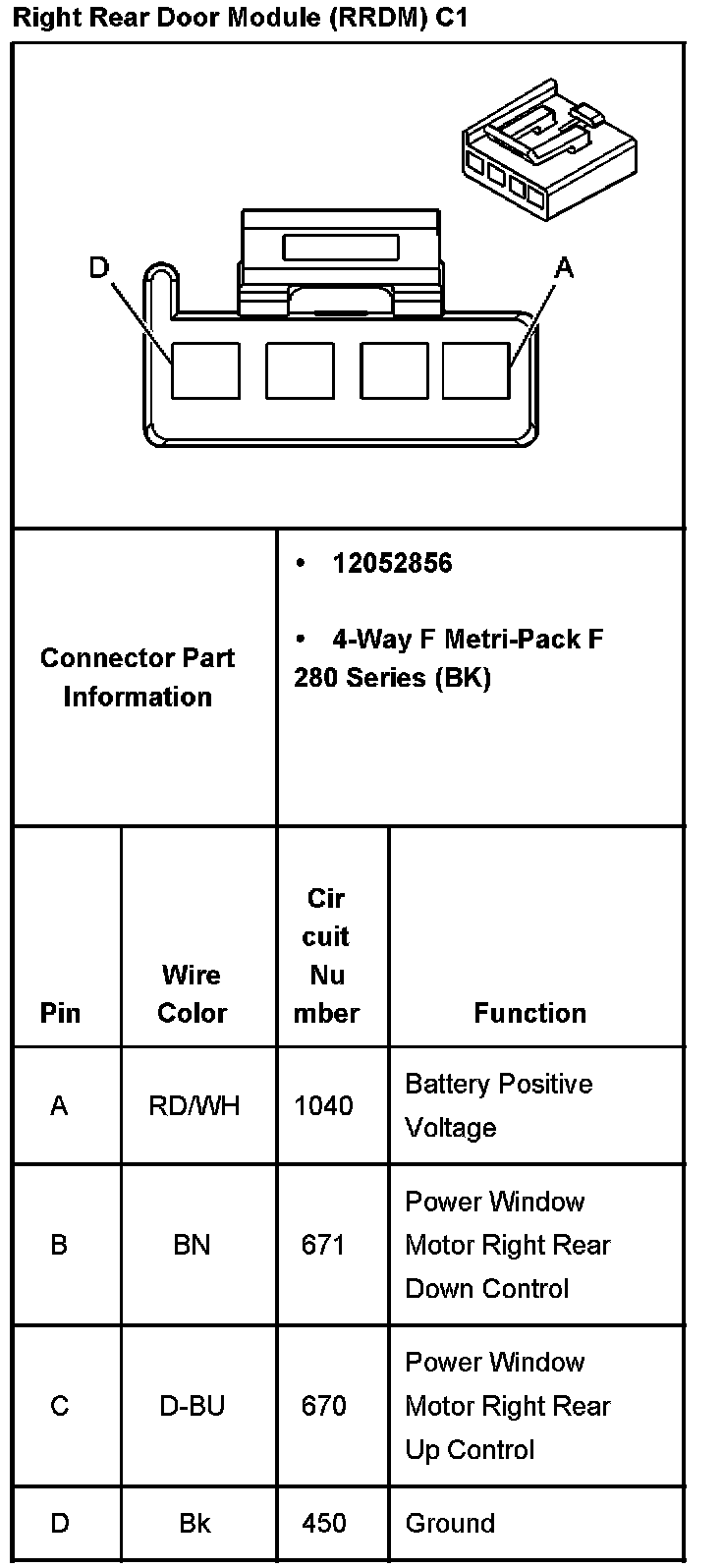 Right Rear Door Module (RRDM) C1: