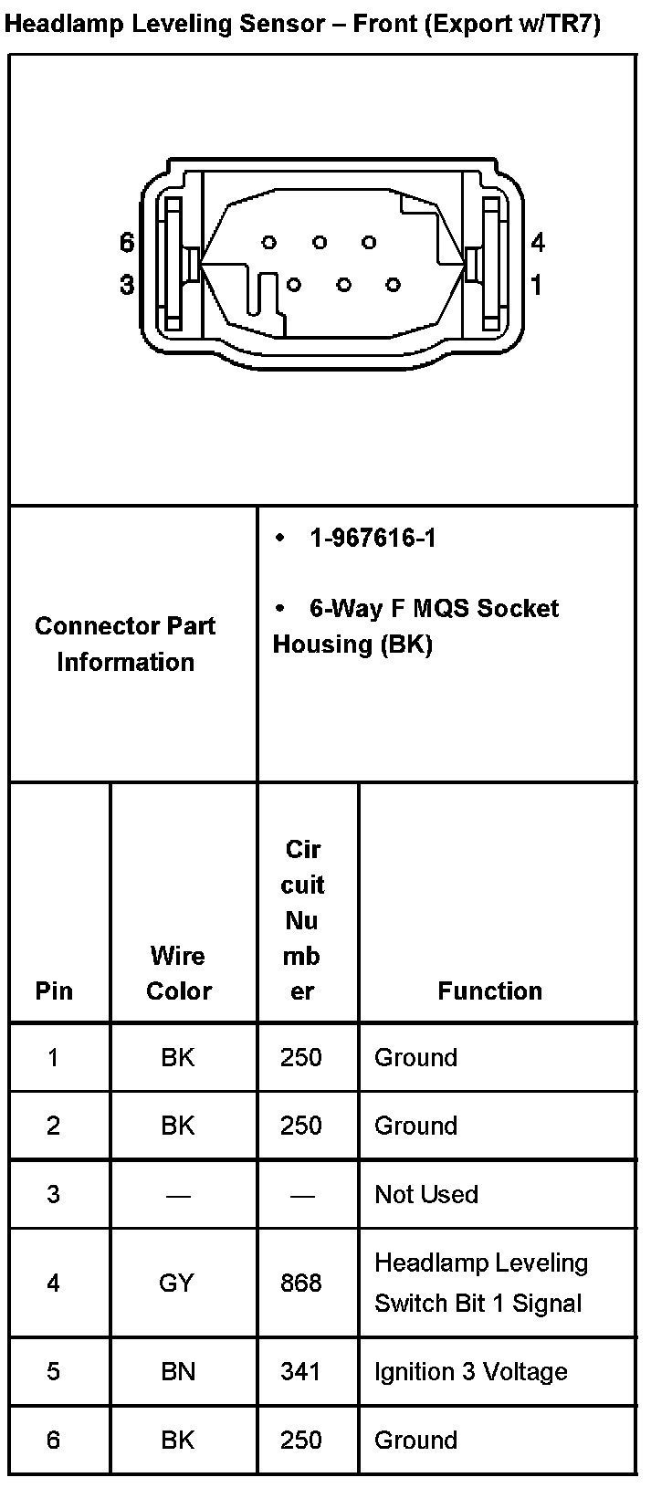 Headlamp Leveling Sensor - Front (Export With RPO Code TR7):