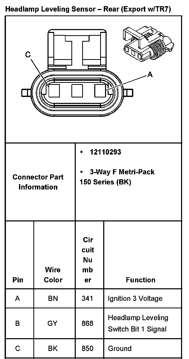 Headlamp Leveling Sensor - Rear (Export With RPO Code TR7):