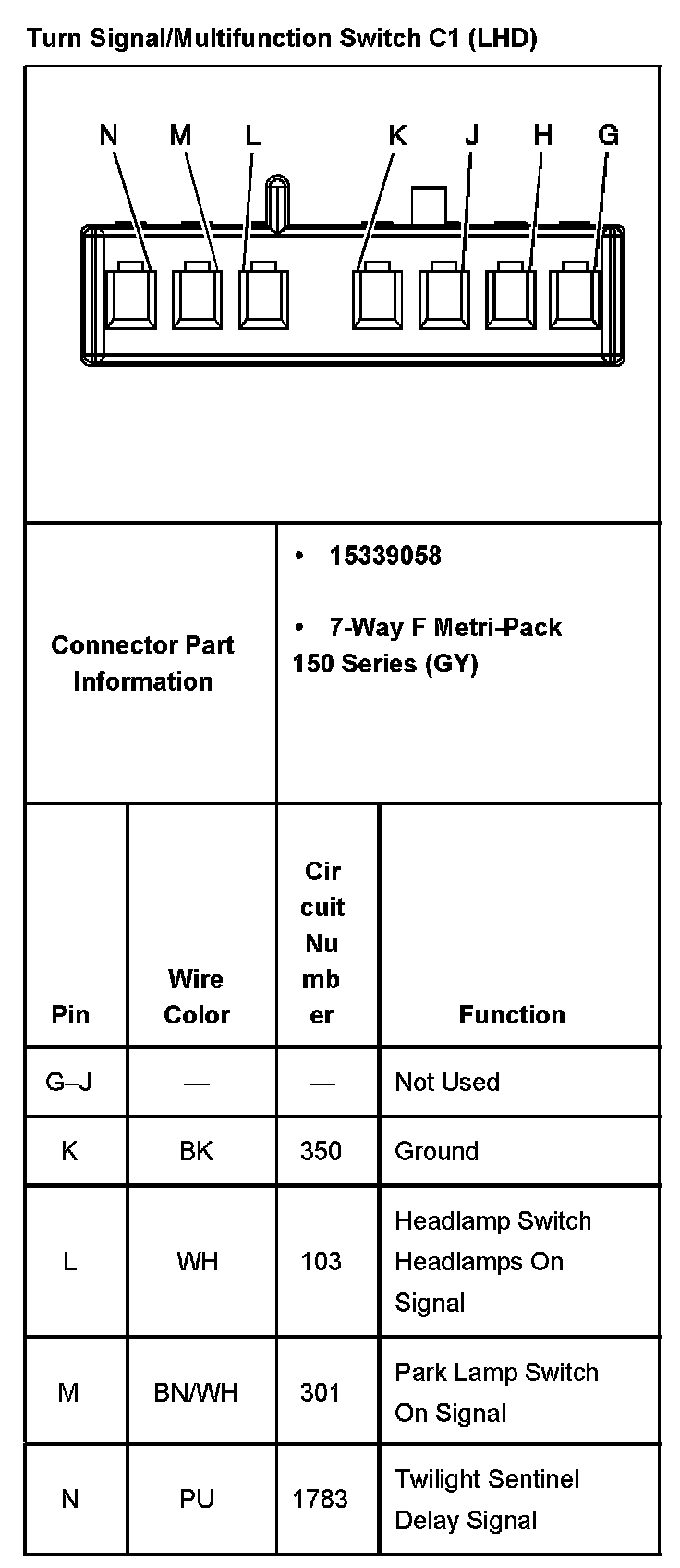 Turn Signal/Multifunction Switch C1 (LHD):