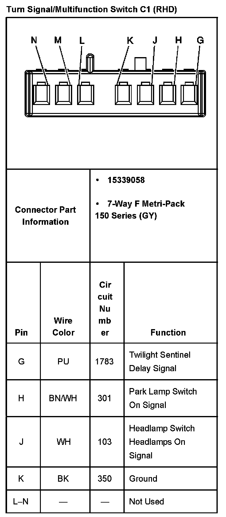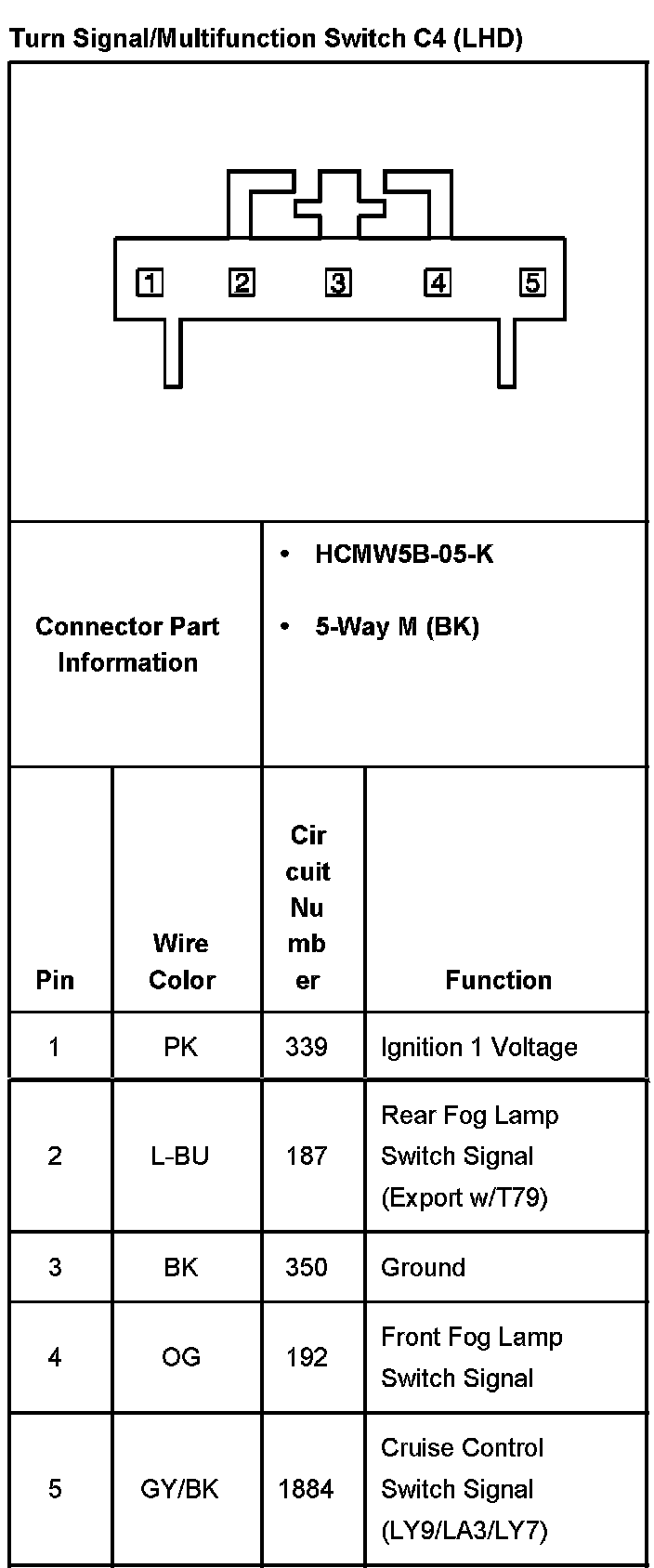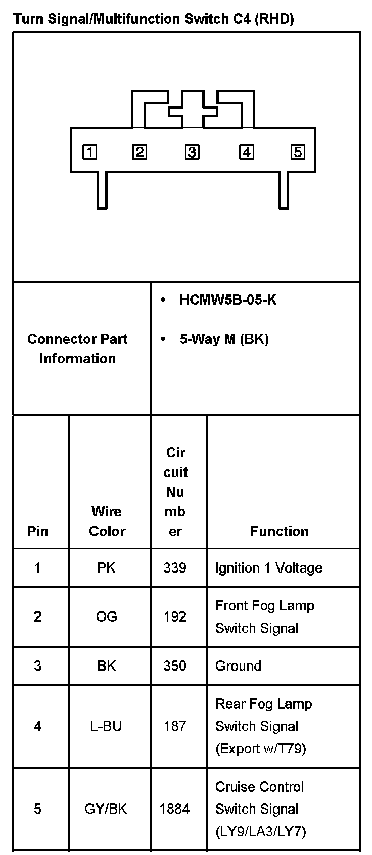 Turn Signal/Multifunction Switch C1 (RHD):