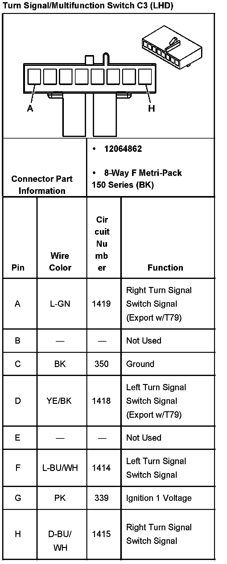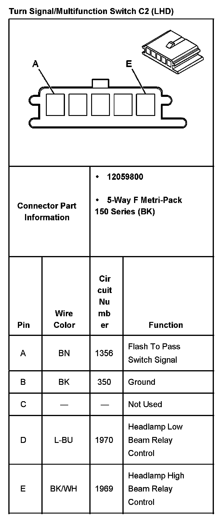 Turn Signal/Multifunction Switch C2 (LHD):