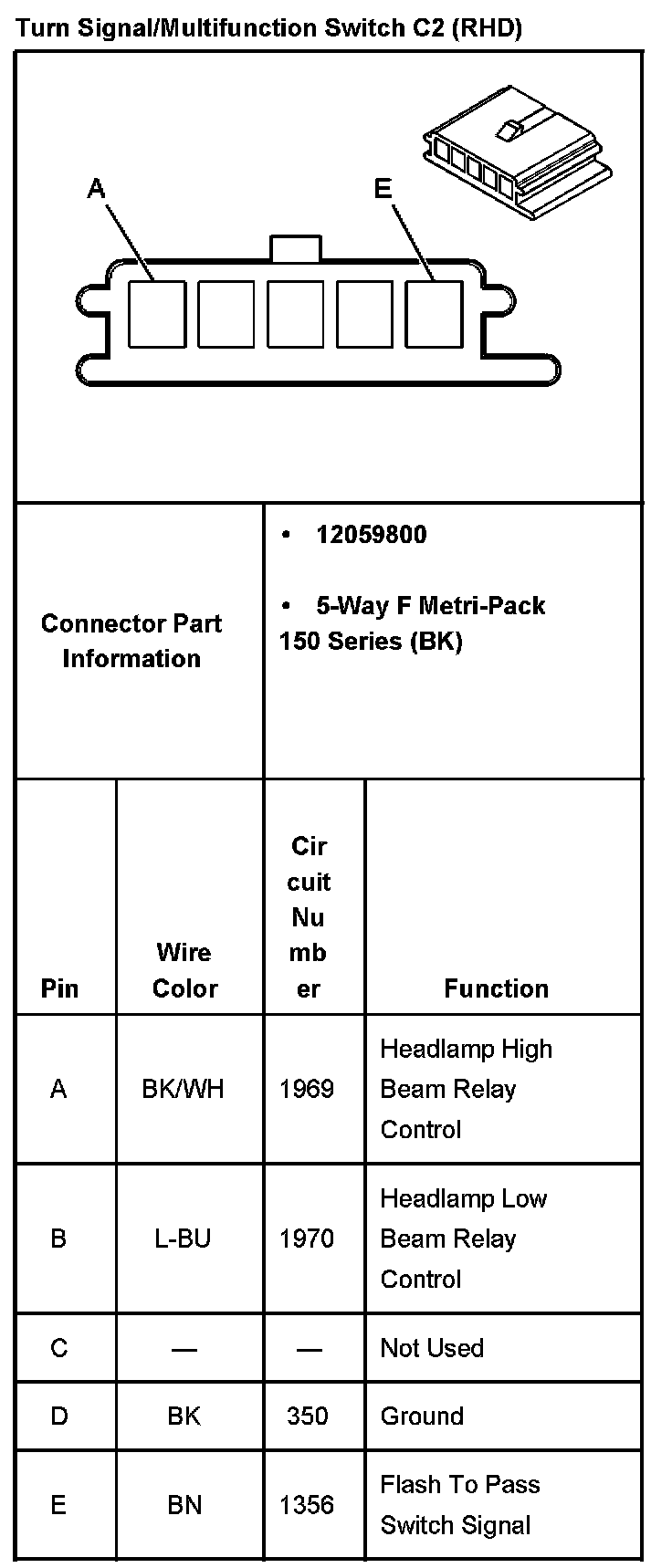 Turn Signal/Multifunction Switch C2 (RHD):