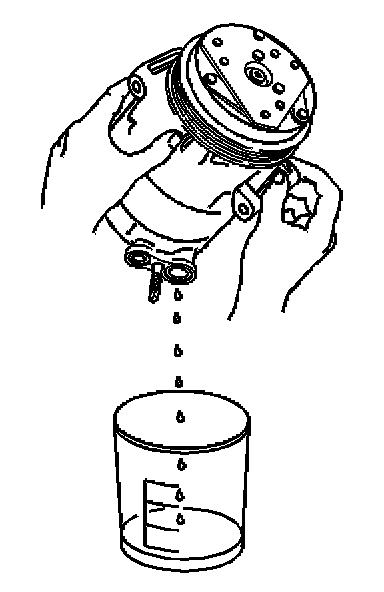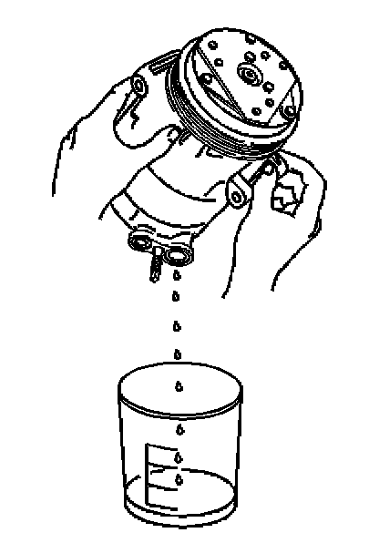 1. Drain the oil from both the suction and discharge ports of the removed compressor into a clean, graduated container. Rotate the compressor shaft to assist in draining the compressor.