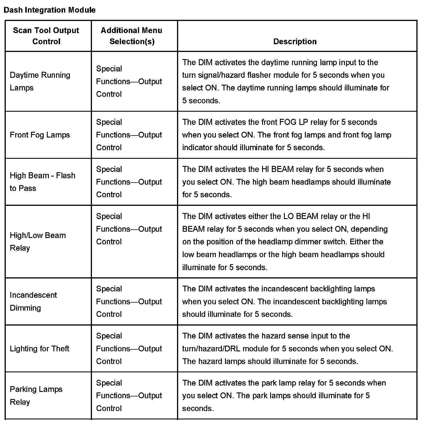 Scan Tool Output Controls