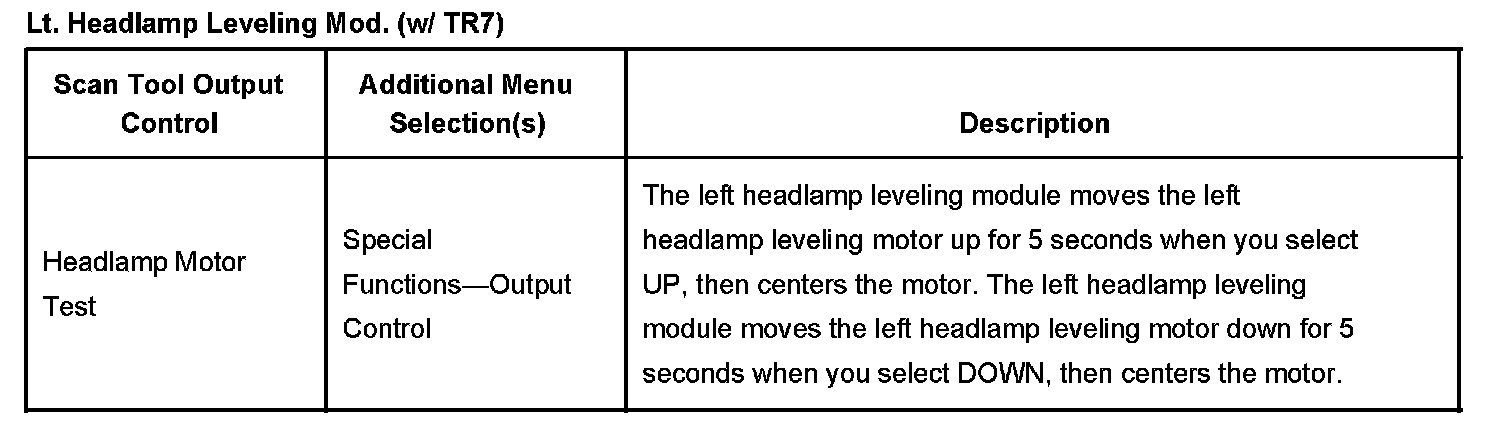 Lt. Headlamp Leveling Mod. (With RPO Code TR7):