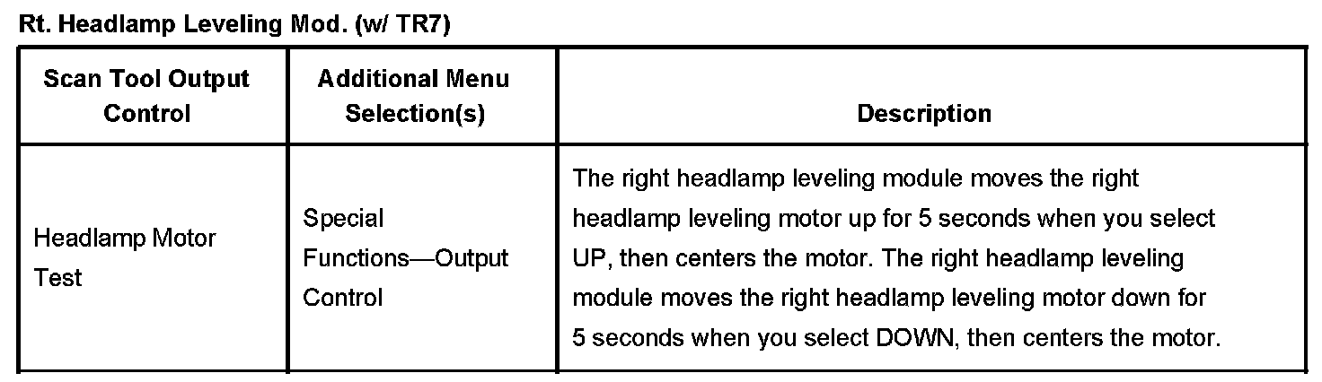 Rt. Headlamp Leveling Mod. (With RPO Code TR7):