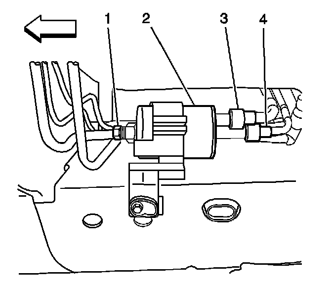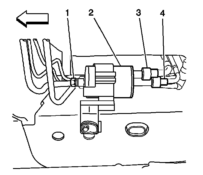 3. Disconnect the quick-connect fittings (3 and 4) at the fuel filter inlet.