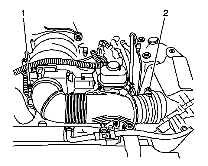 2. Loosen the air cleaner outlet duct clamps (1, 2).