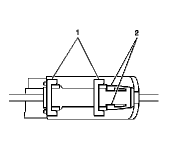 3. Push the clutch position switch retaining plate locking tabs (2) toward each other.