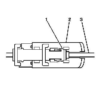 1. Install the clutch pedal position switch (2) to the clutch master cylinder push rod (3).