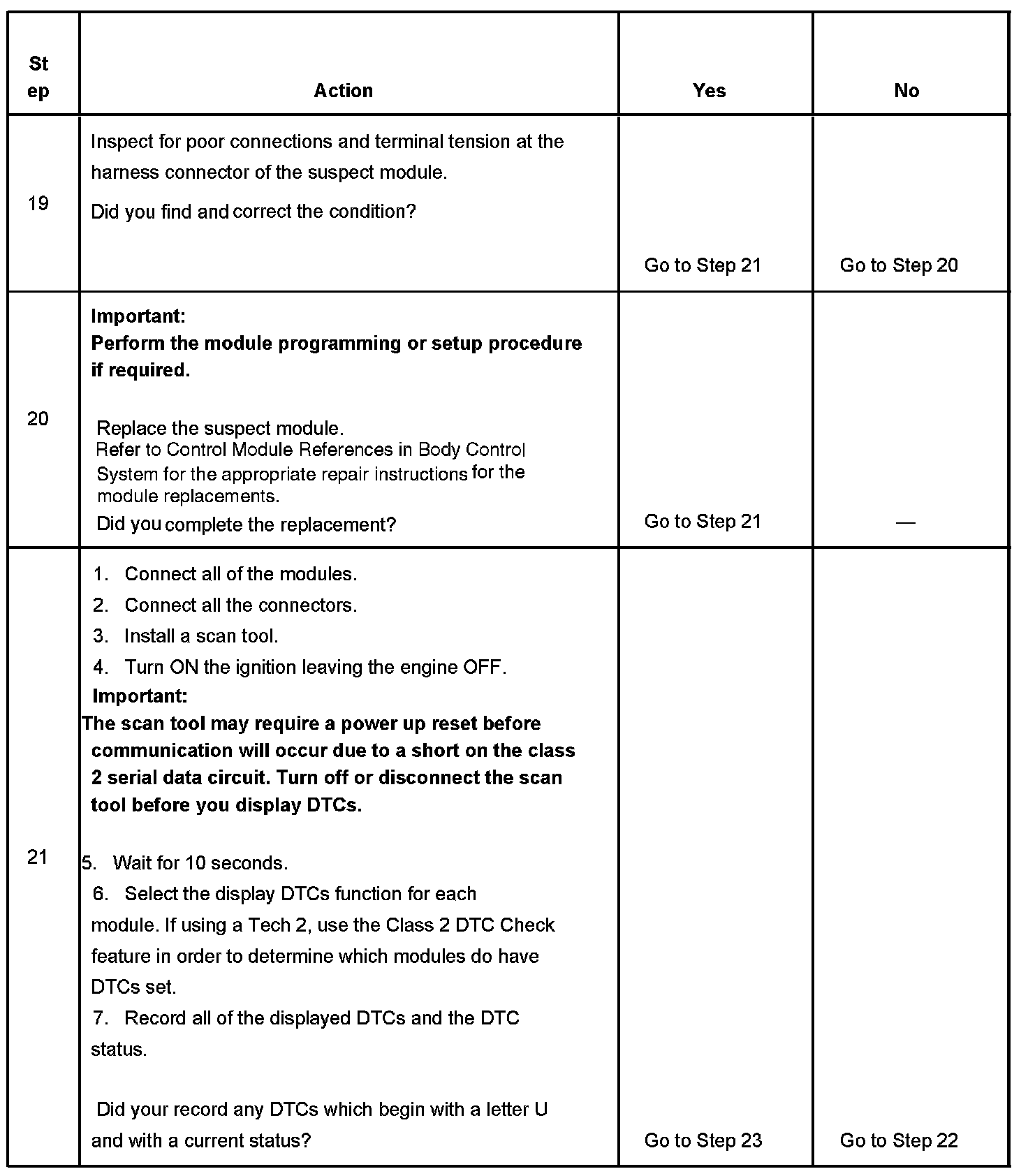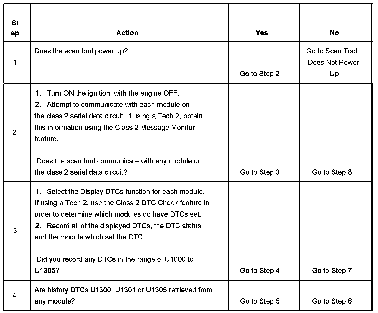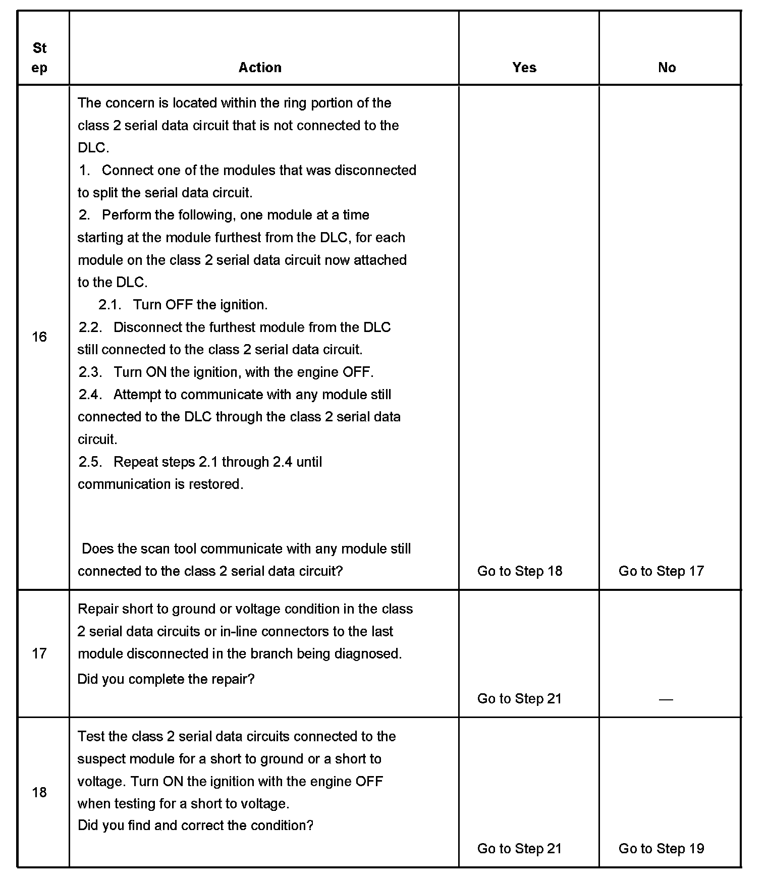 2. A partial loss of communication in the class 2 serial data circuit uses a different procedure than a total loss of communication of the class 2 serial data circuit.