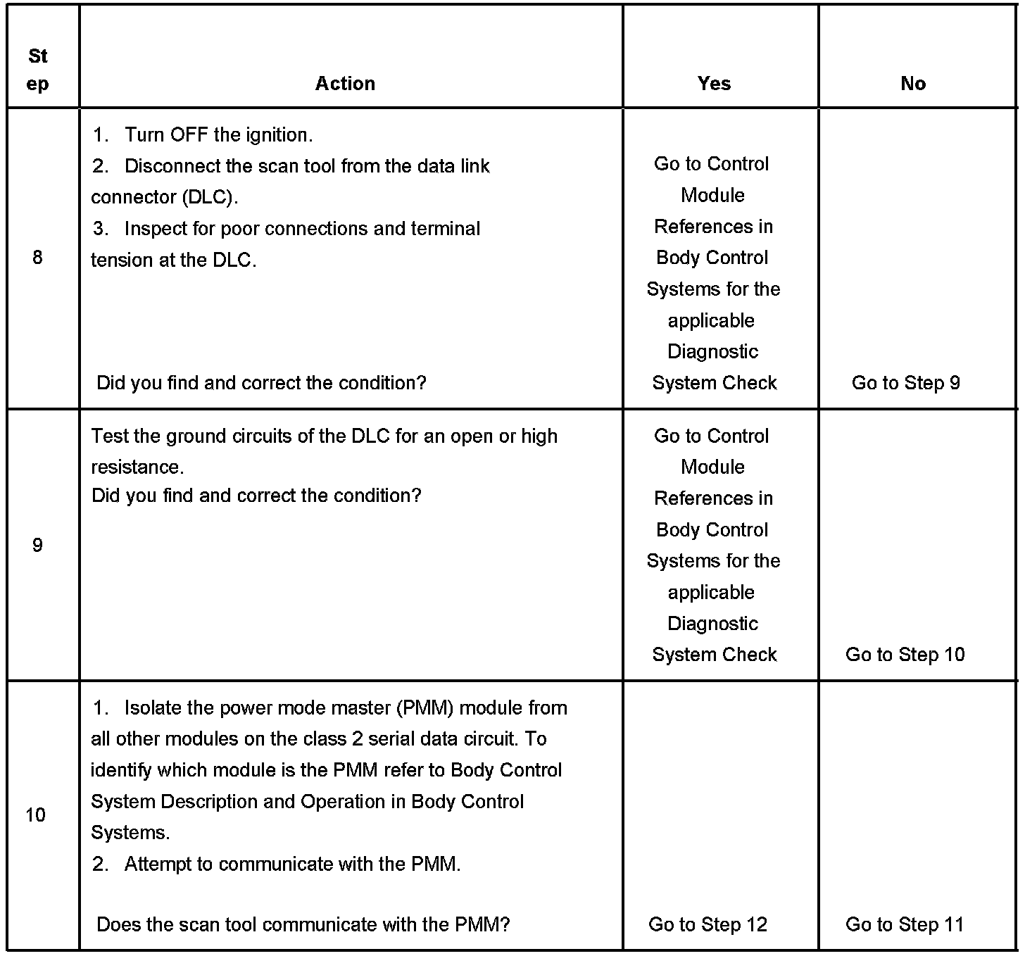 10. Normal class 2 serial data communication cannot take place until the power mode master (PMM) module sends the appropriate power mode message. If the PMM does not send a wake-up message, other modules on the class 2 serial data circuit may not communicate.