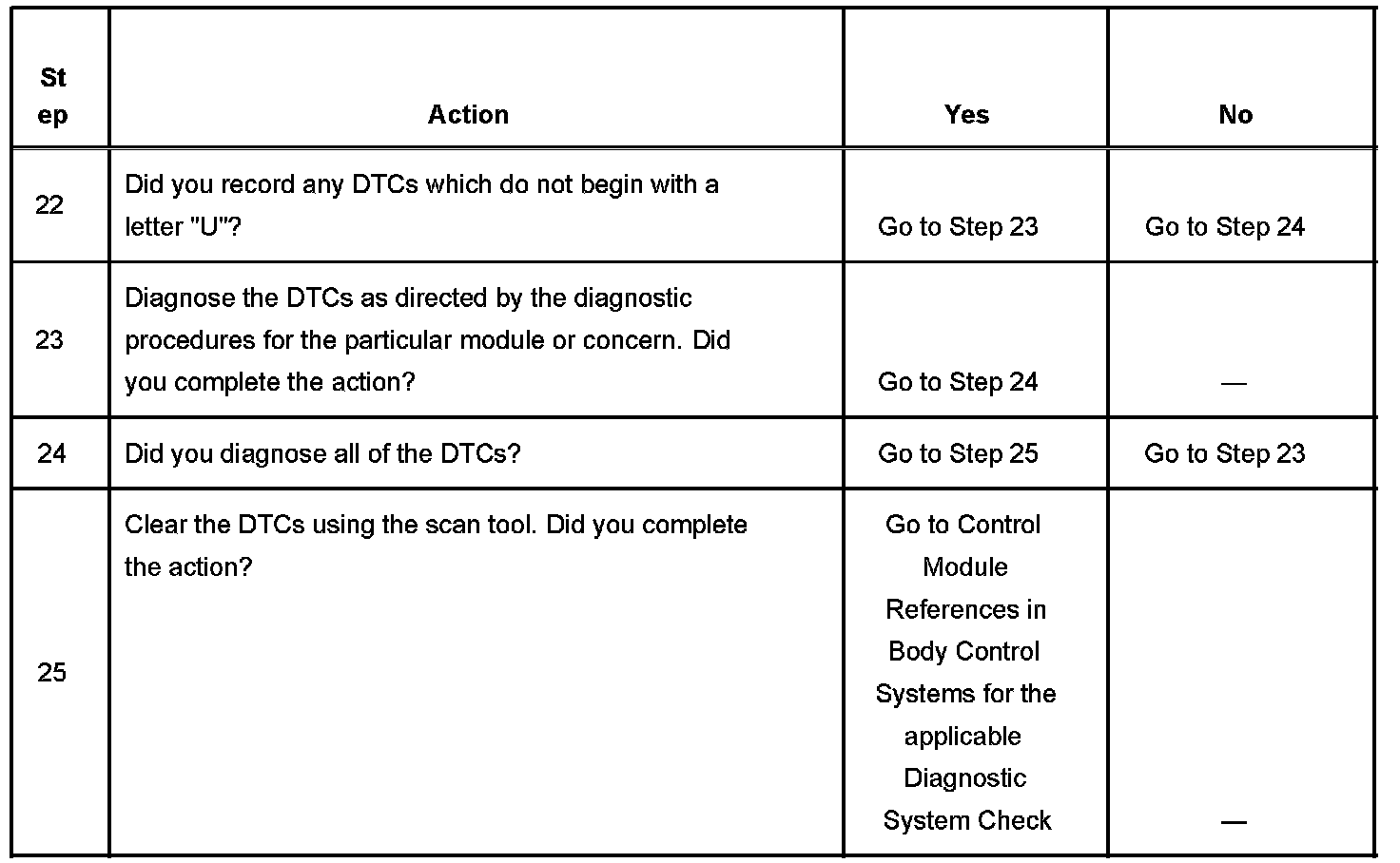 22. If there are no current DTCs that begin with the letter "U", the communication concern has been repaired.