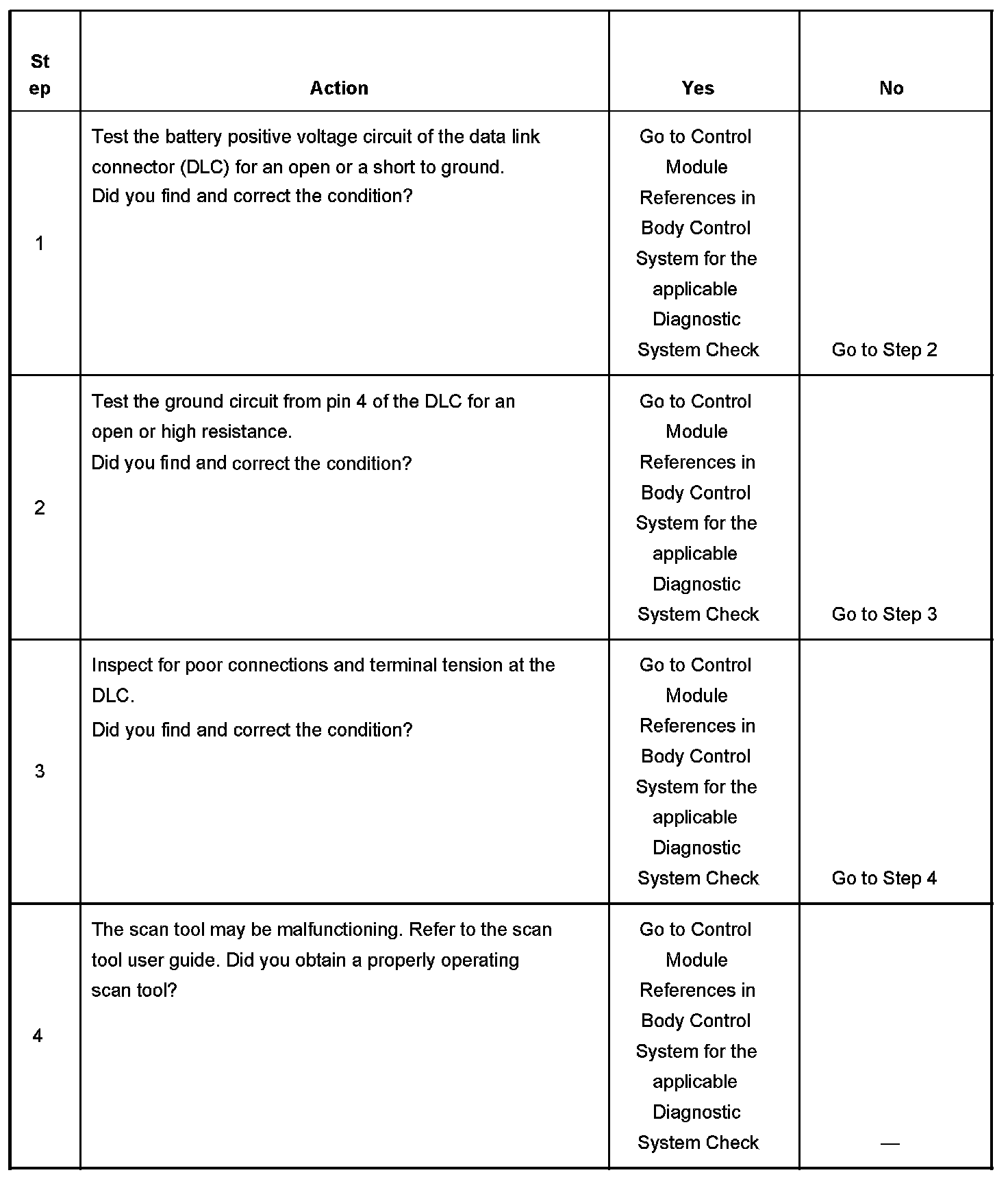 4. If the battery positive voltage and ground circuits of the DLC are functioning properly. The malfunction must be due to the scan tool.