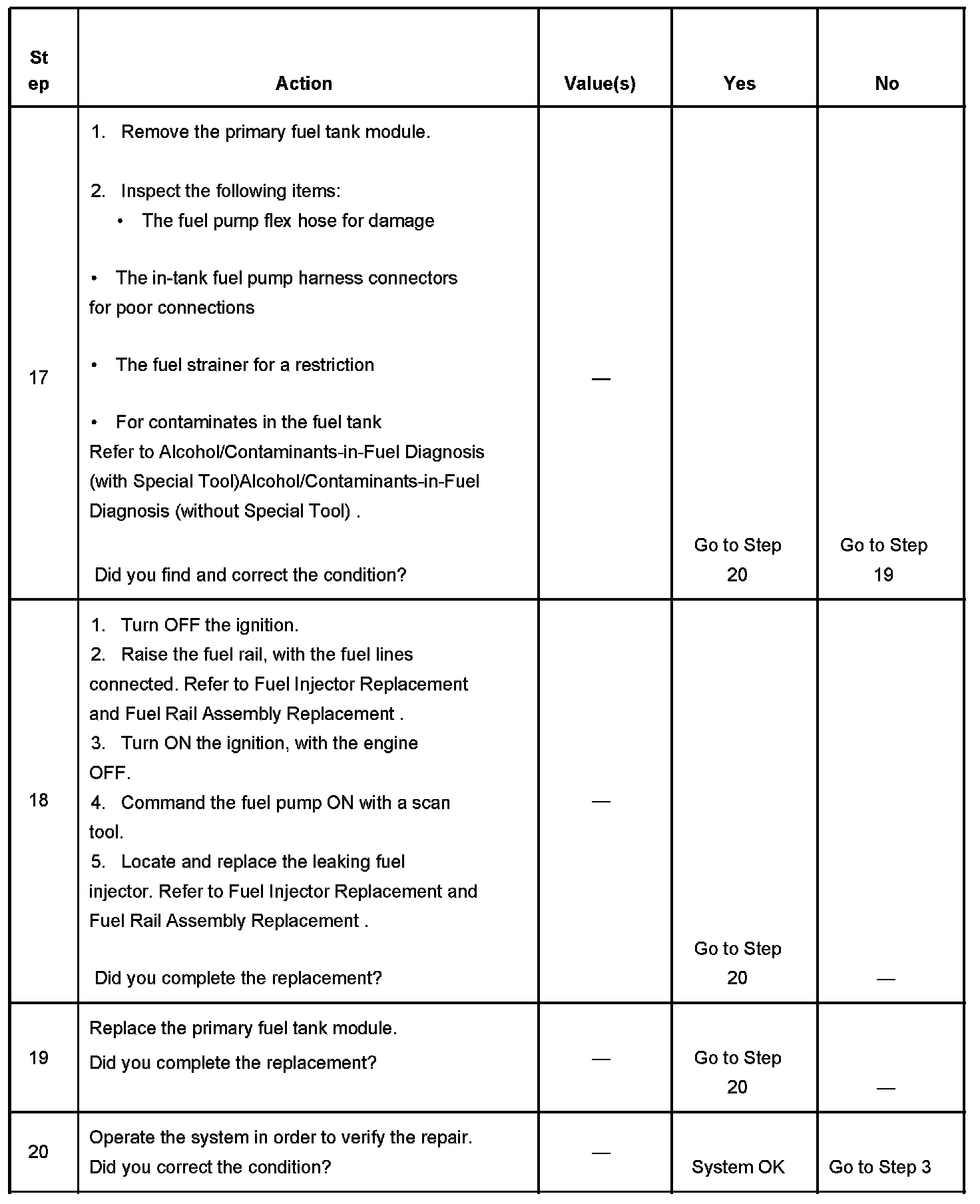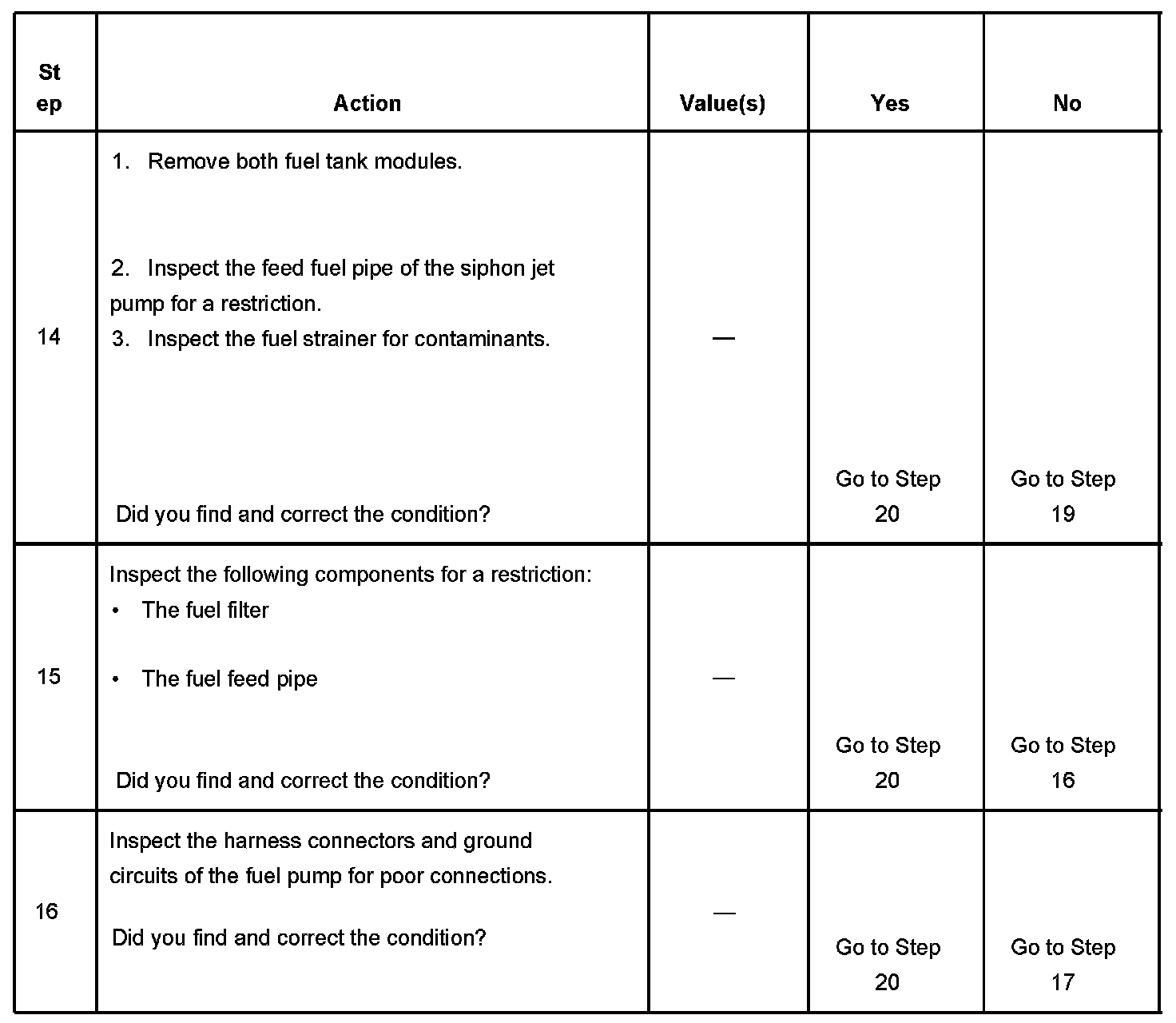 16. This step verifies that a circuit condition is not the cause of a fuel pressure concern. Inspect all fuel pump electrical circuits thoroughly.
