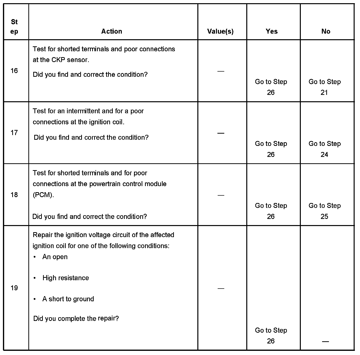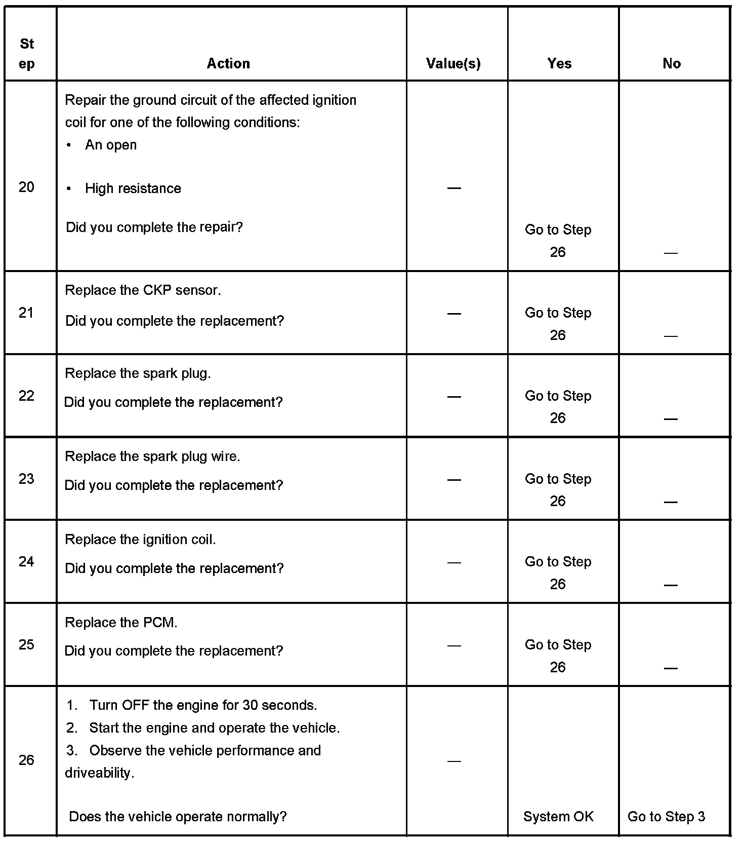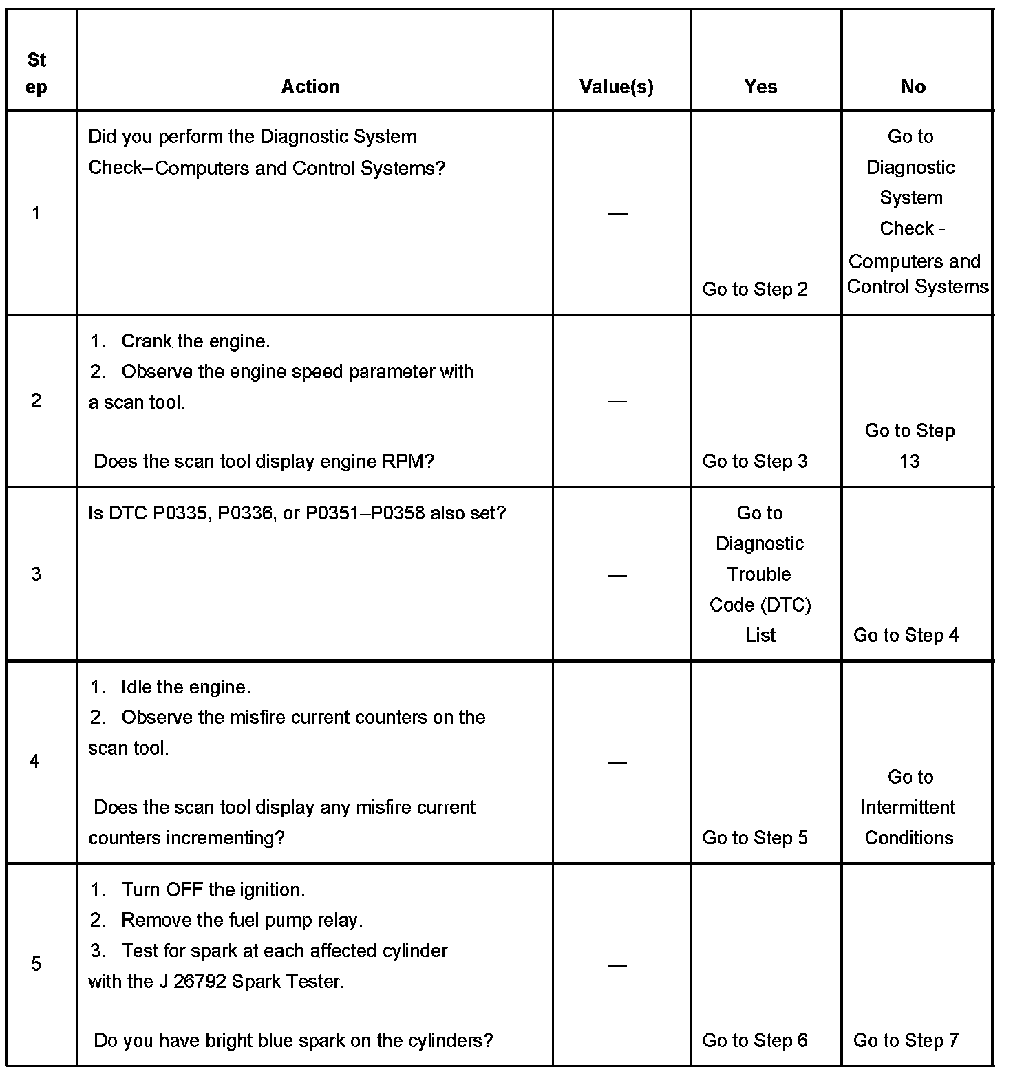 The number below refers to the step number on the diagnostic table.