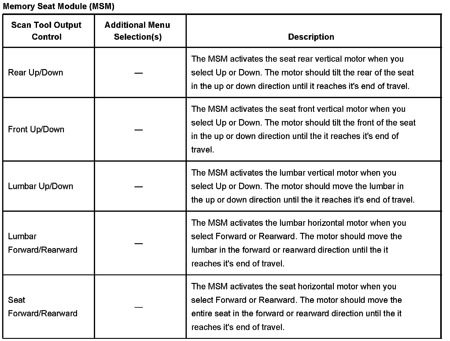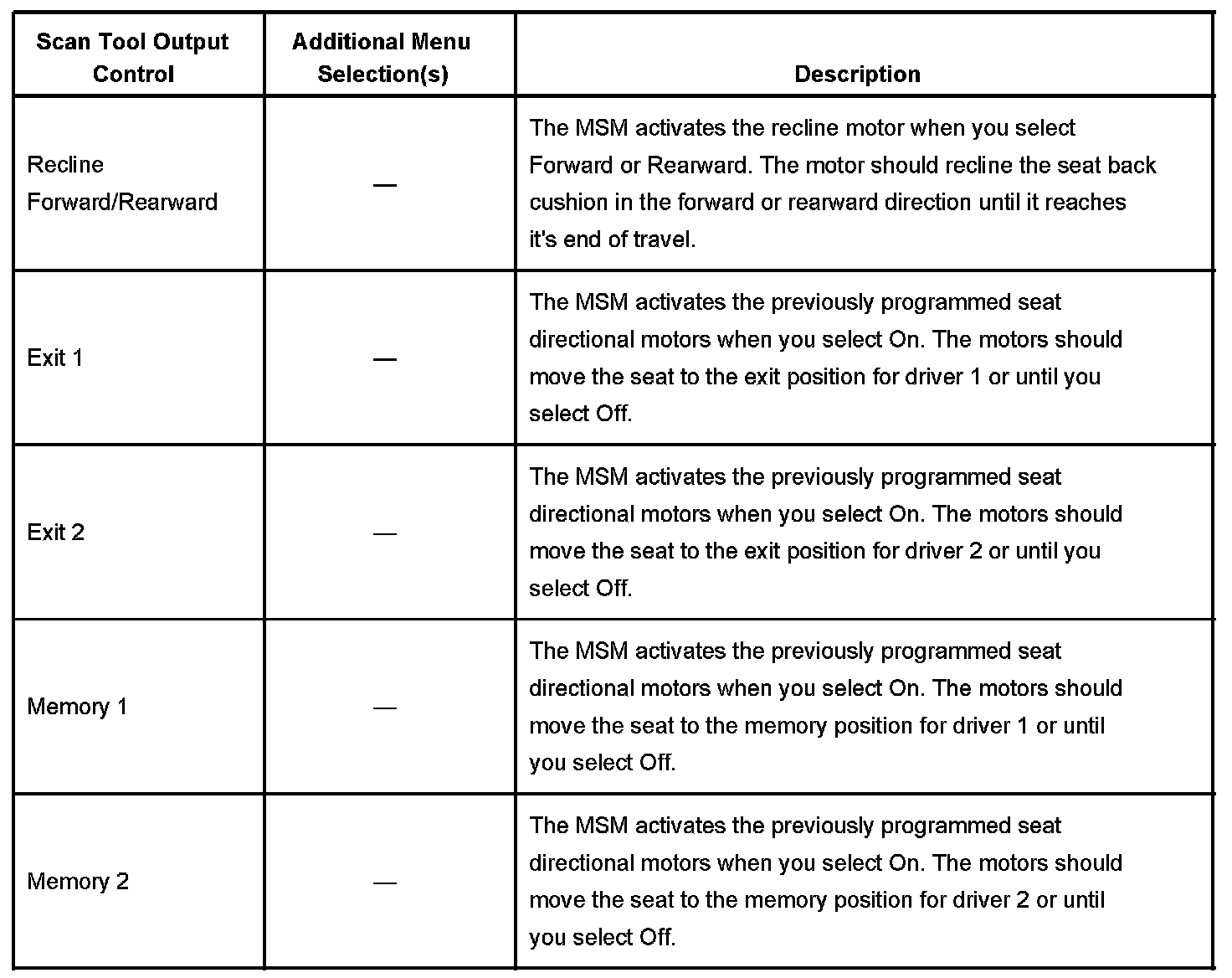 Scan Tool Output Controls