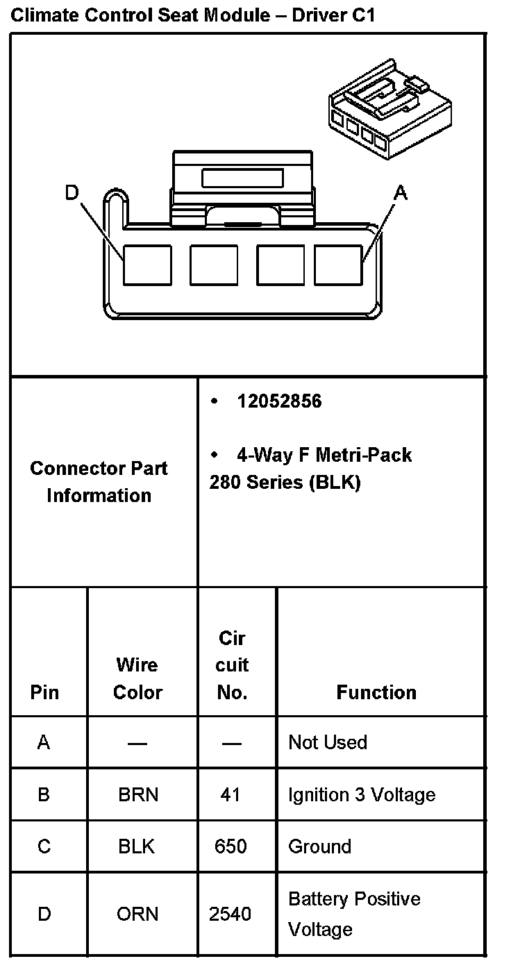 Climate Control Seat Module - Driver C1:
