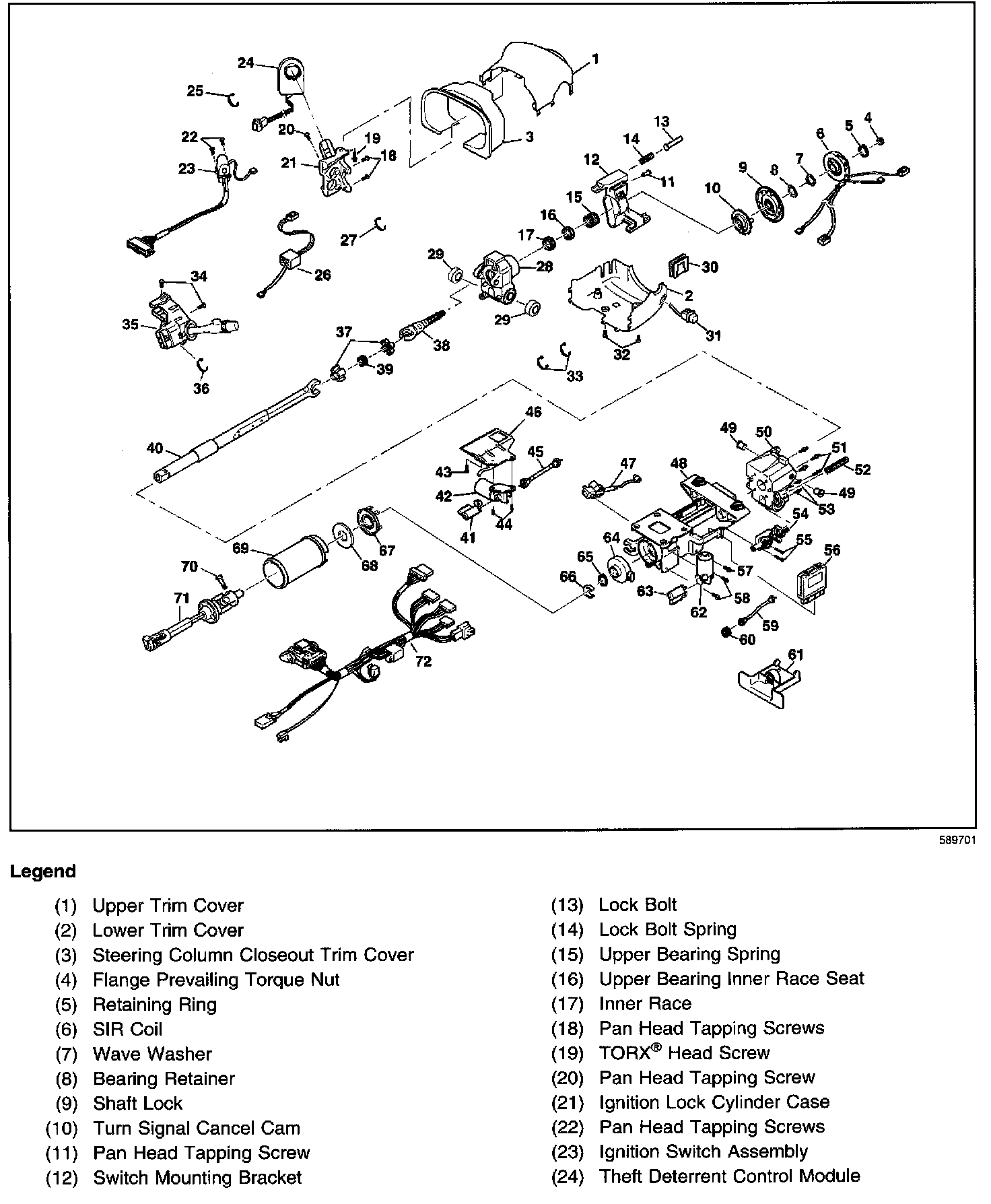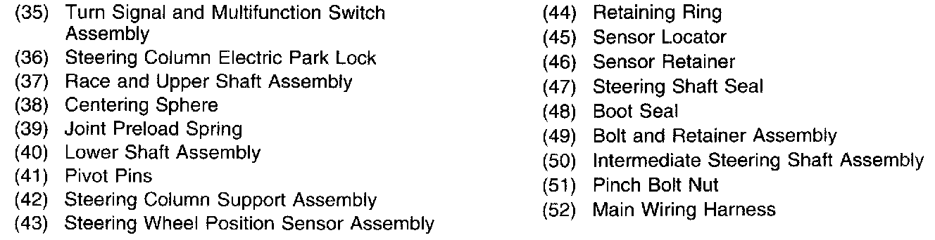 Steering Column Disassembled View (Manual Tilt, Floor Shift) Manual Tilt Steering Column, Floor Shift