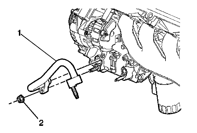 3. Install the compressor mounting stud (1) through the appropriate compressor mounting boss.