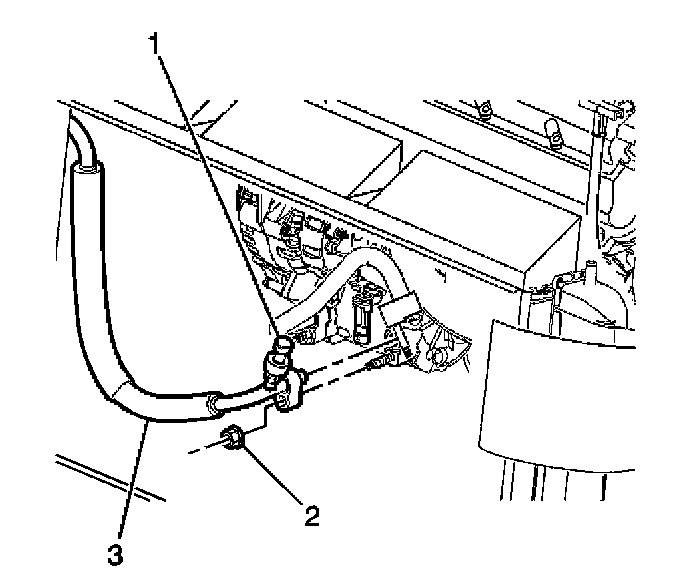10. Remove the discharge hose (3) from the compressor.