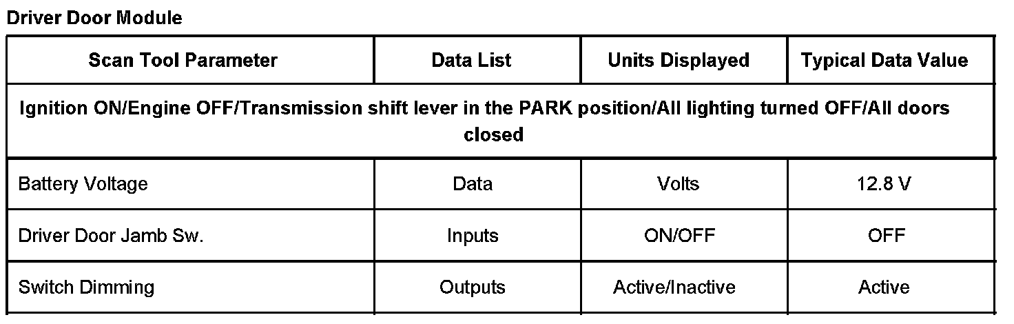 Scan Tool Data List - Driver Door Module: